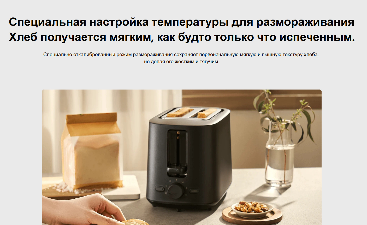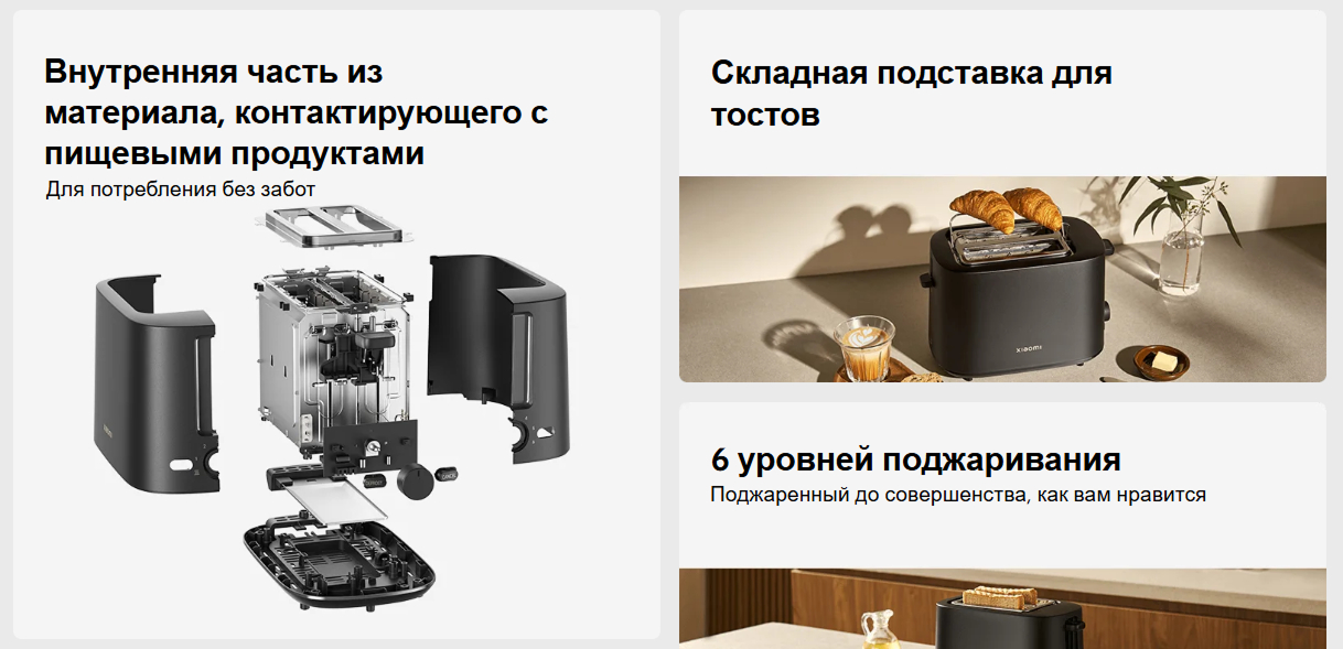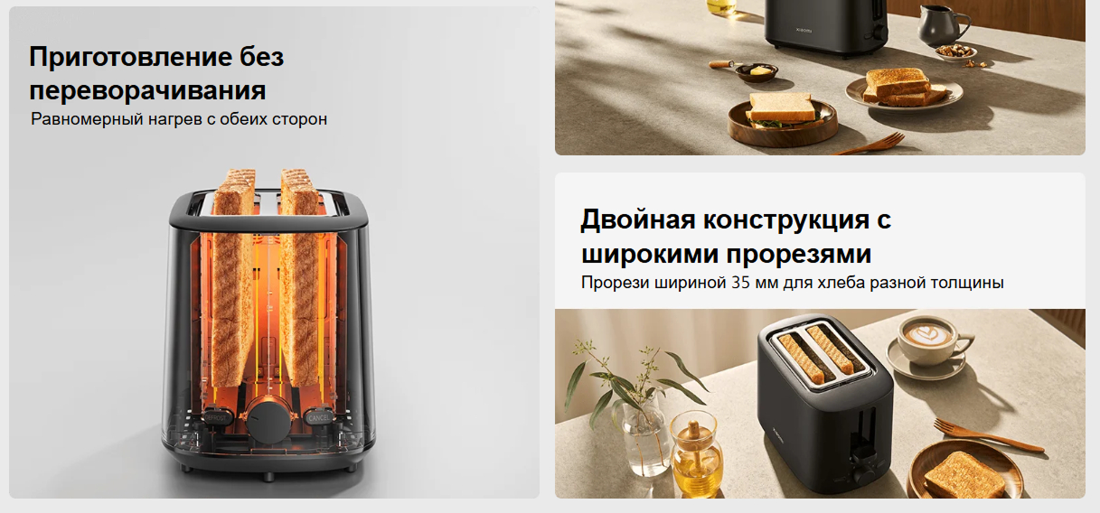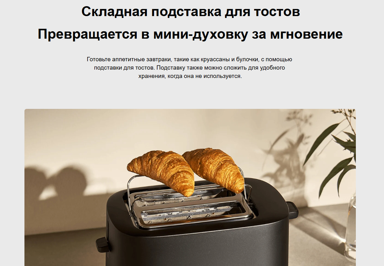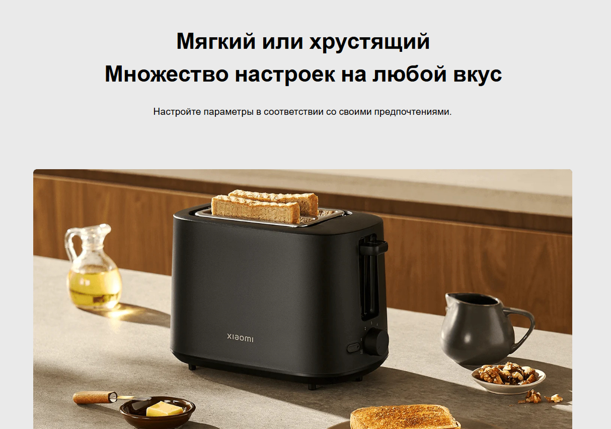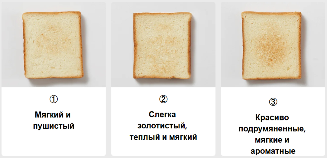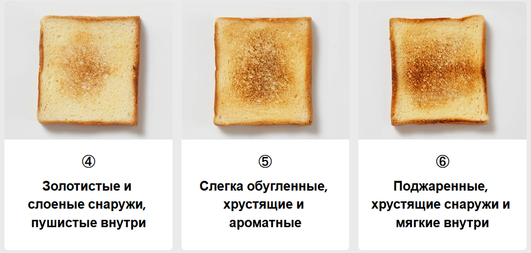 3) Регулируемый уровень поджаривания — возможность выбрать степень обжарки хлеба по вкусу: от легкой золотистой корочки до хрустящей текстуры.