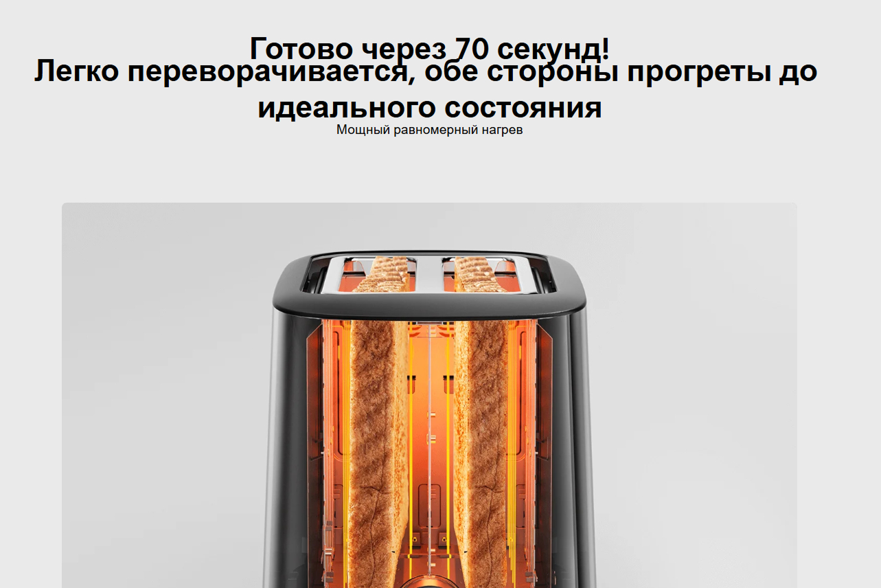 2) Эффективное поджаривание — диапазон мощности от 780 до 930 Вт обеспечивает быстрое и равномерное поджаривание тостов без пересушивания.