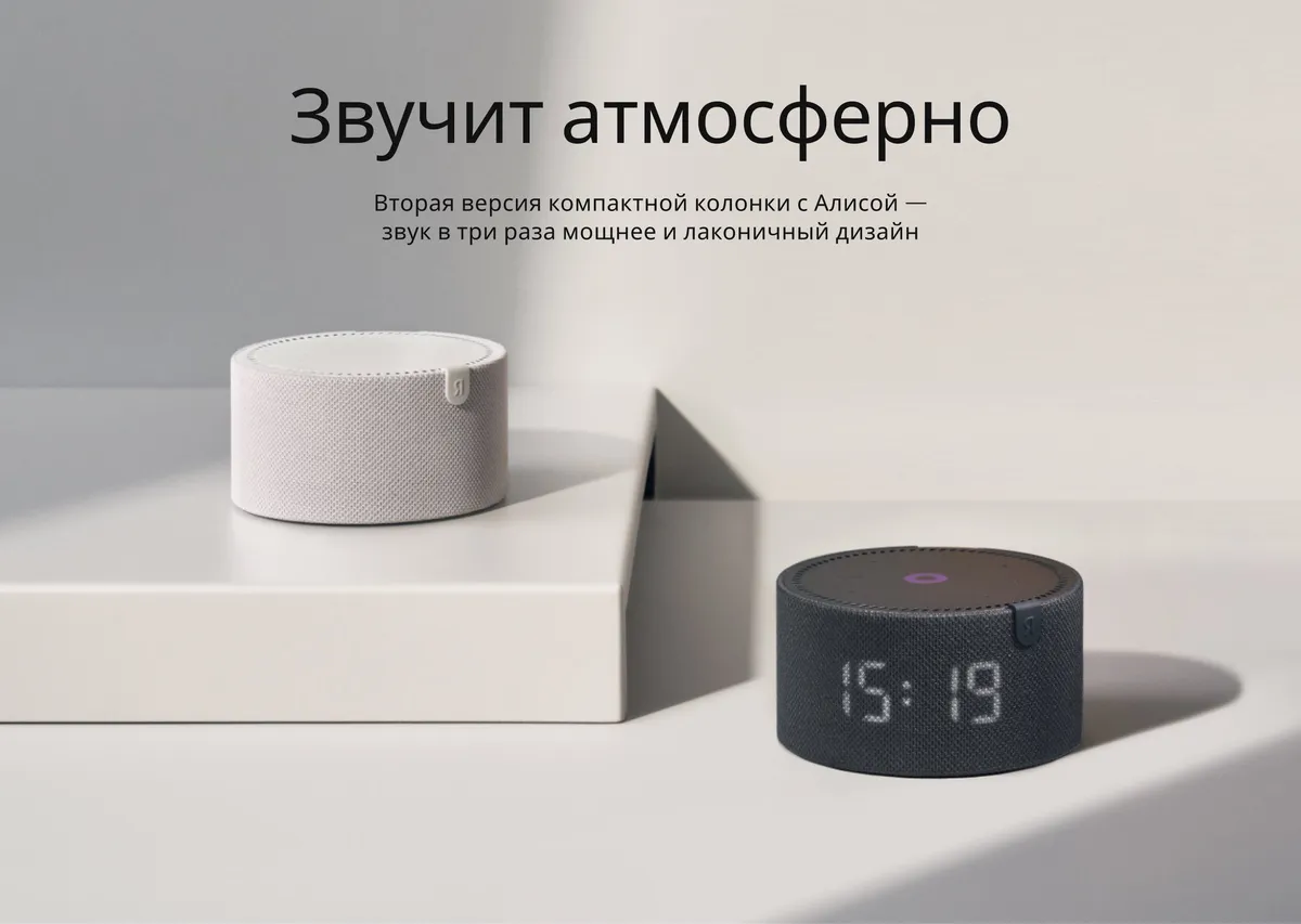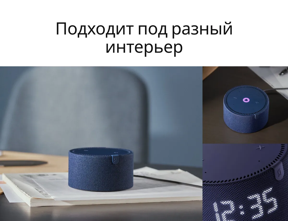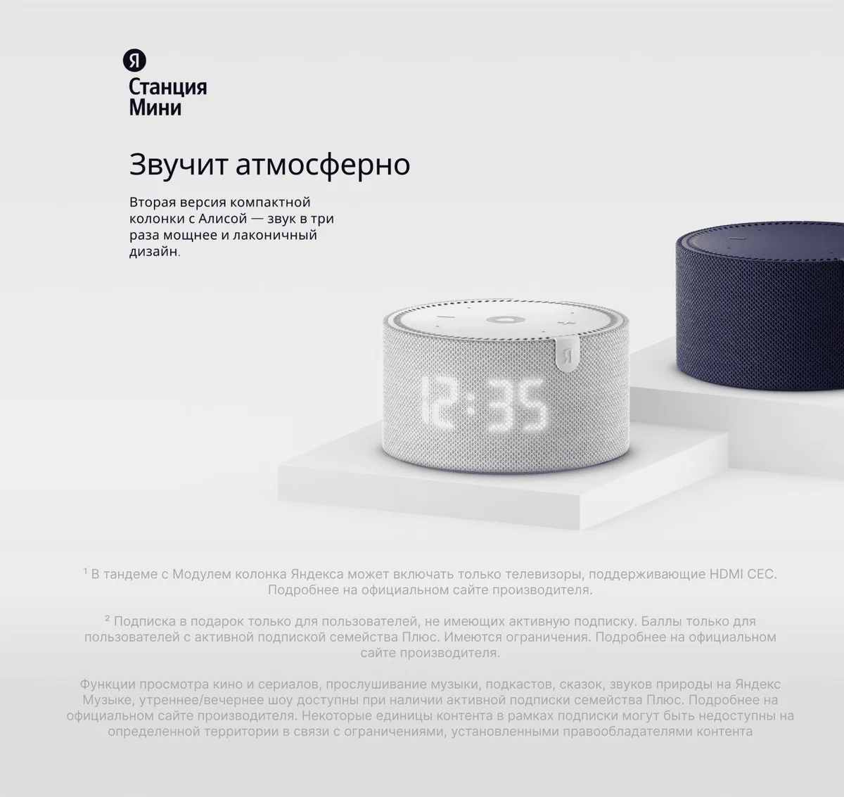 Smart dinamik Yandex Station Mini Alice bilan soat, quvvat adapteri, foydalanuvchi qo'llanmasi.
