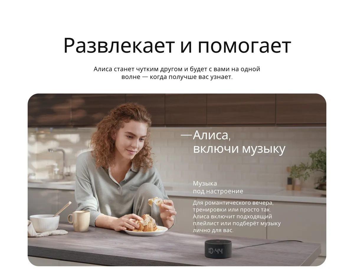 поддержка голосовых помощников , управление умным домом , получение информации , голосовое управление , воспроизведение музыки , установка будильников и звонков