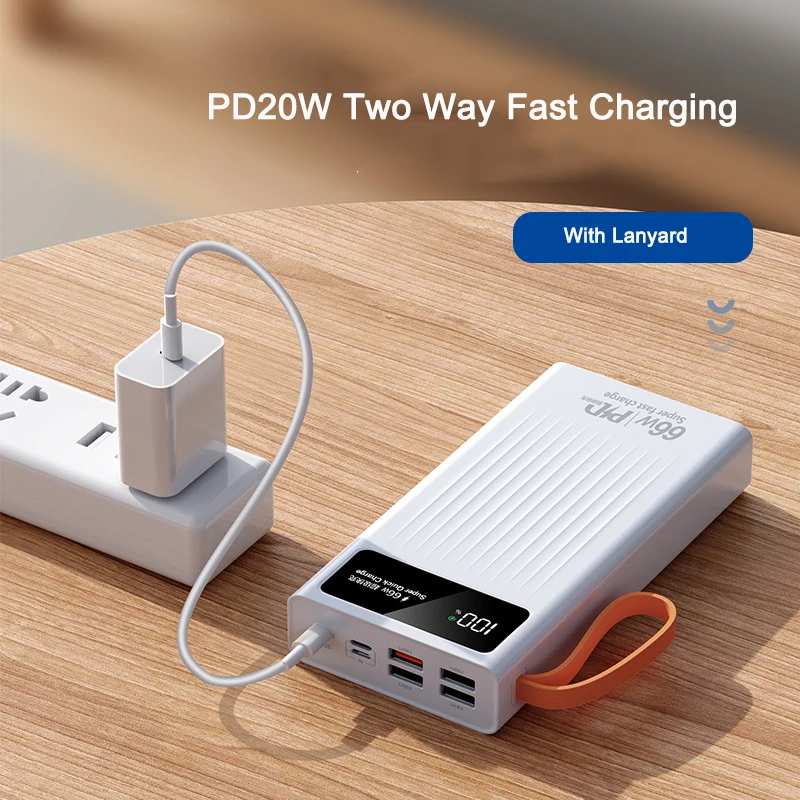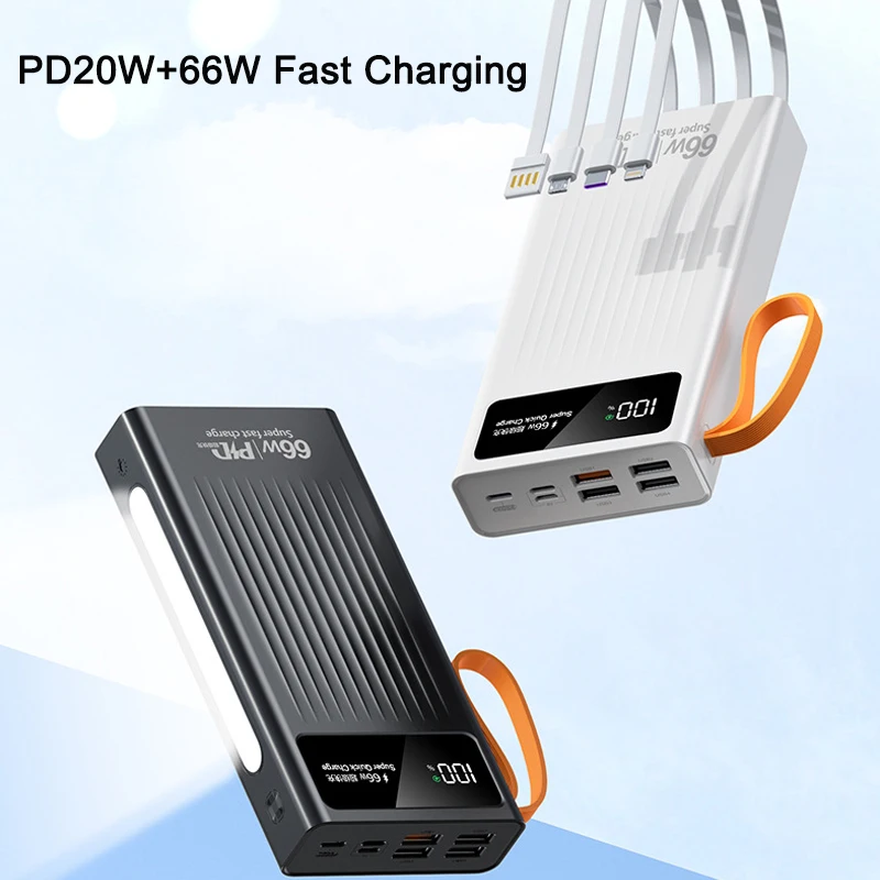Внешний аккумулятор 30000 мАч PD20W 66 Вт сверхбыстрая зарядка со встроенным кабелем светодиодный фонарик портативный внешний аккумулятор зарядное устройство Poverbank