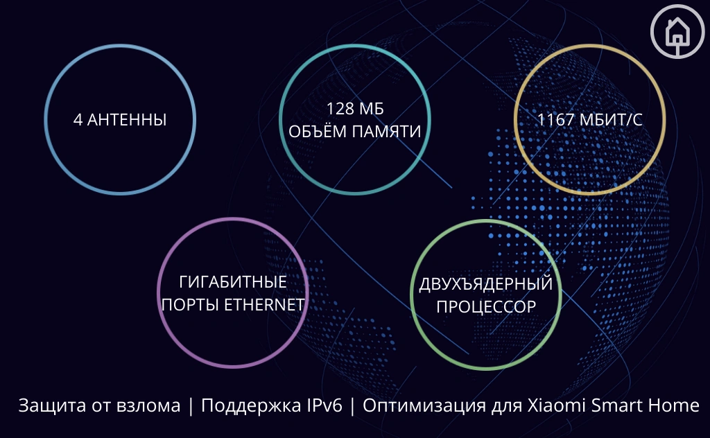 Маршрутизатор Xiaomi оснащён оперативной памятью 128Мб. Он обеспечивает стабильное сетевое подключение и раздаёт сигнал на всю конфигурацию «умного дома», а также персональную технику, работающую по сети wi-fi – вы можете подключить до 128 устройств.