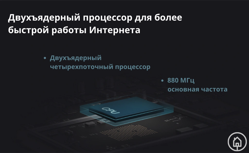 Модем Xiaomi оснащён двухъядерным четырёхпоточным процессором с тактовой частотой 800 МГц для каждого ядра. Это означает высокую производительность и большую пропускную способность даже при большом количестве подключенных устройств.