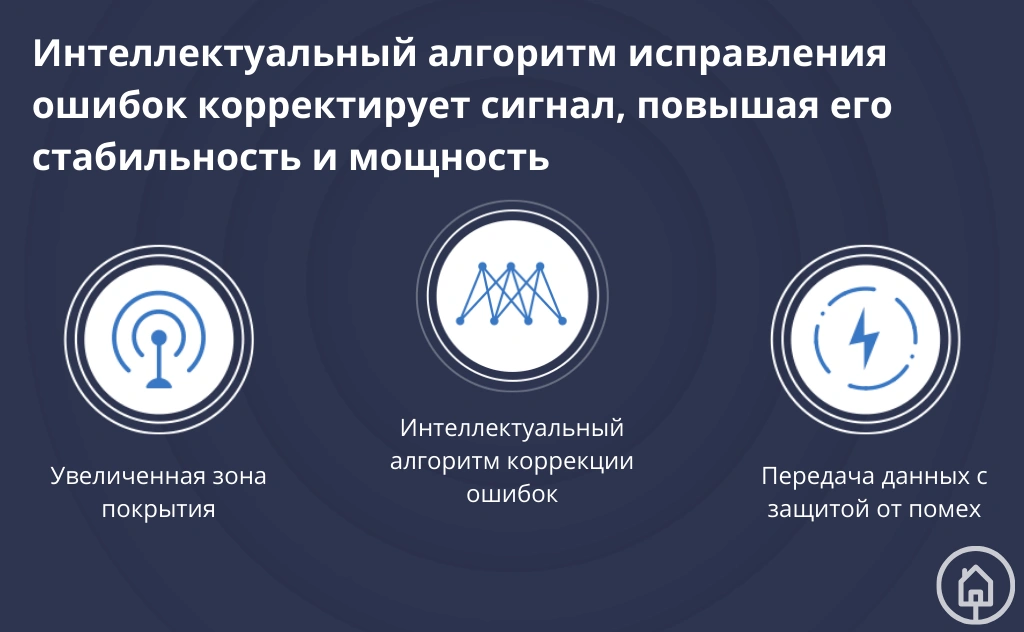Кроме того, интеллектуальный алгоритм исправления ошибок LDPC корректирует сигнал, снижая уровень помех при передаче данных и расширяя область покрытия.