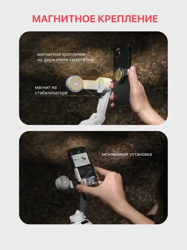Устройство с лёгкостью помещается в сумку и весит всего 352 грамма. Запаса аккумулятора хватит на 8 часов автономной работы, а значит отлично подойдет для прогулки или коммерческой съёмки в течение рабочего дня. Держатель подойдет для смартфона шириной от 67-84 мм и толщиной до 10 мм.