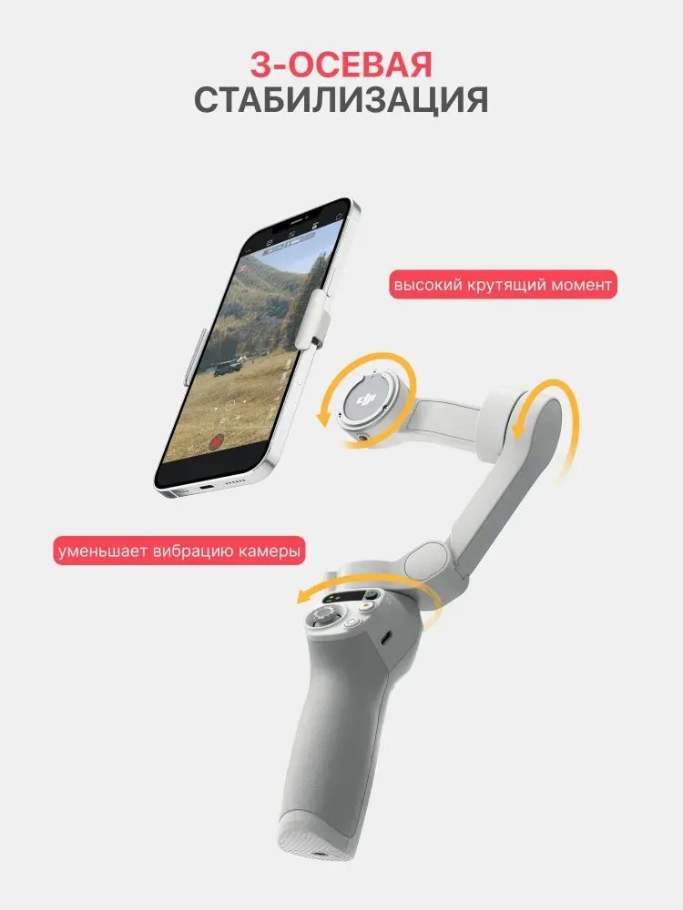 Бесщеточный двигатель с высоким крутящим моментом позволяет стабилизатору реагировать на мельчайшие сдвиги даже при работе с большими или тяжелыми смартфонами. 3-осевая стабилизация выполняет компенсацию в реальном времени, уменьшая вибрацию камеры для получения плавных кадров.