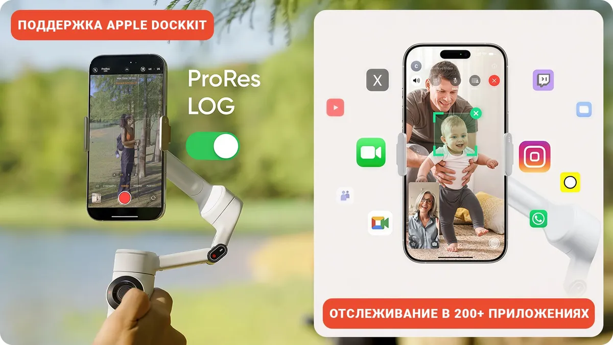 Технология Apple DockKit позволяет включить отслеживание людей прямо в стандартном приложении камеры на iPhone, а также в более чем 200 различных сторонних приложениях. Также при съемке на iPhone вам доступны форматы ProRes, LOG и Dolby Vision.