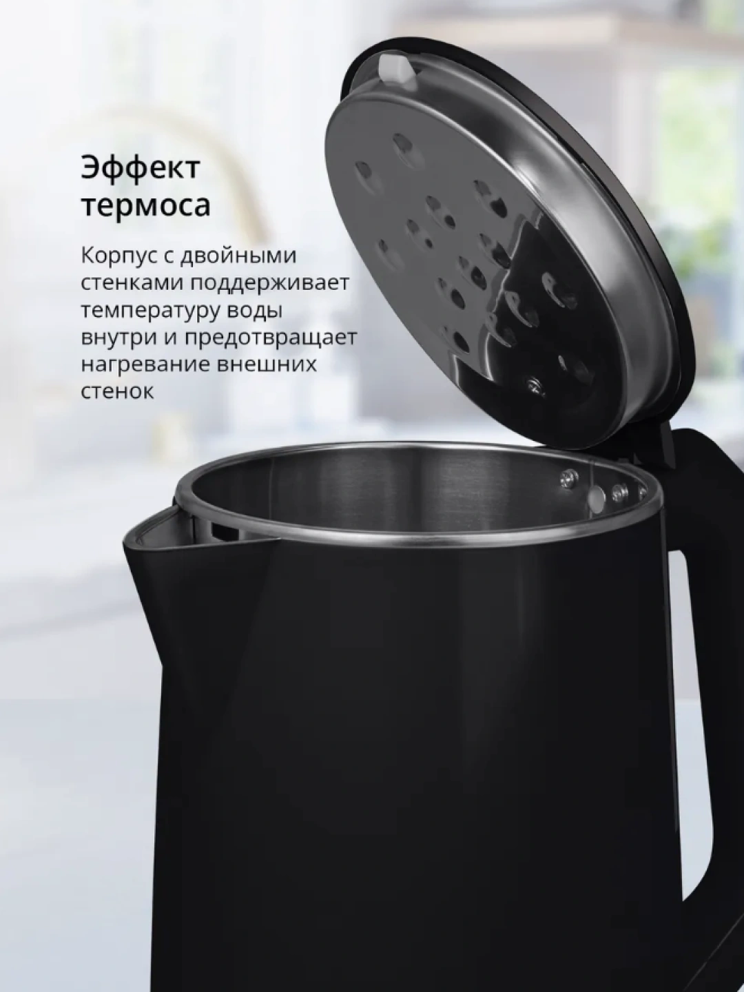 Благодаря двойным стенкам колбы, чайник Blackton Bt KT1710P обладает эффектом термоса: он долго сохраняет тепло и поддерживает необходимую температуру напитка. Это позволяет вам наслаждаться горячими напитками в течение длительного времени без необходимости повторного кипячения.