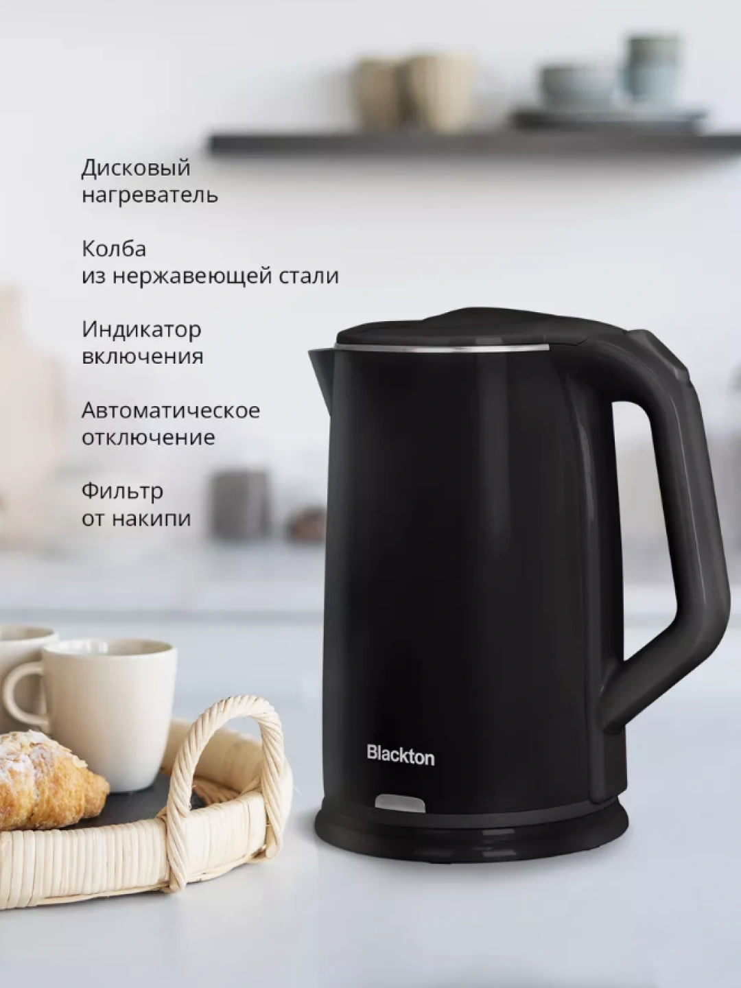 Электрический чайник Blackton Bt KT1710P — это идеальный помощник для быстрого и удобного приготовления горячих напитков. С мощностью 1500 Вт и объемом 1.8 л, он легко справляется с задачей кипячения воды для чая, кофе или других горячих блюд. Чайник выполнен из нержавеющей стали с двойными стенками, что обеспечивает не только долговечность, но и сохранение тепла. Благодаря автоотключению при закипании и отсутствии воды, вы можете быть уверены в безопасности использования.
