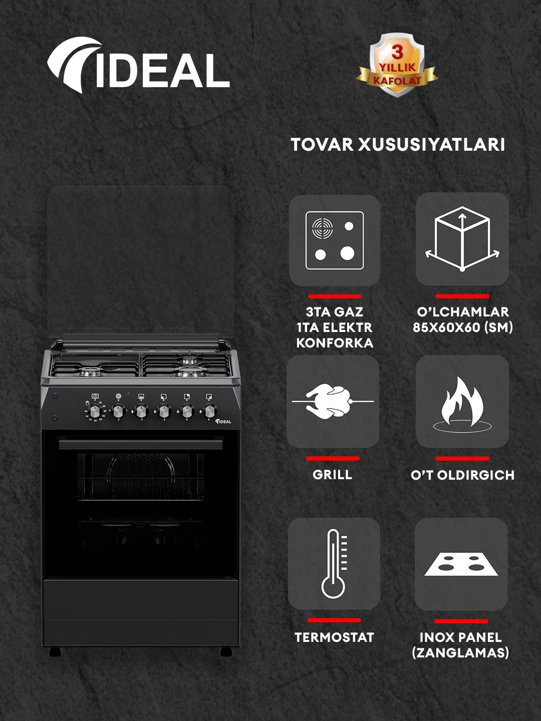 - Turkiya texnologiyasi asosida O'zbekistonda ishlab chiqarilgan. Kafolat: 3 yil