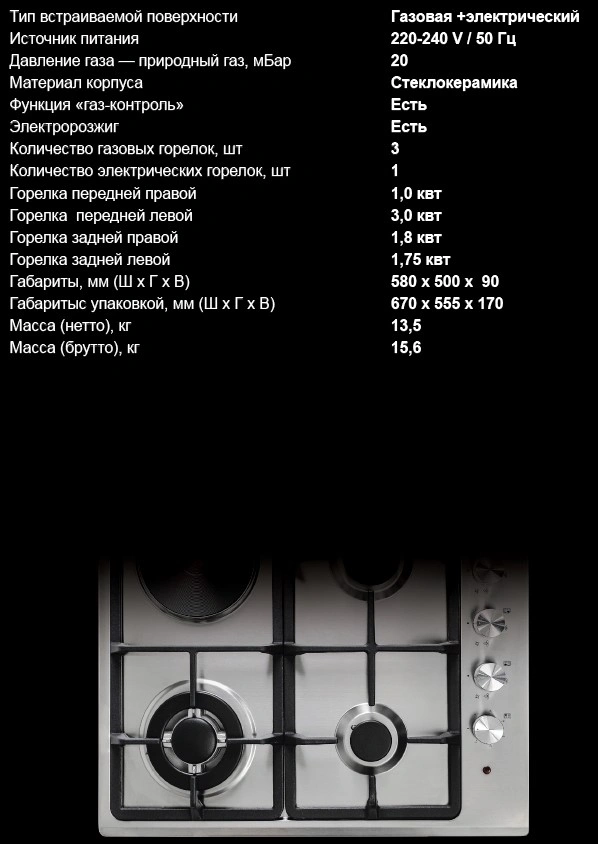Гибридная варочная панель Avalon AVL-GH314 E (3+1), серый