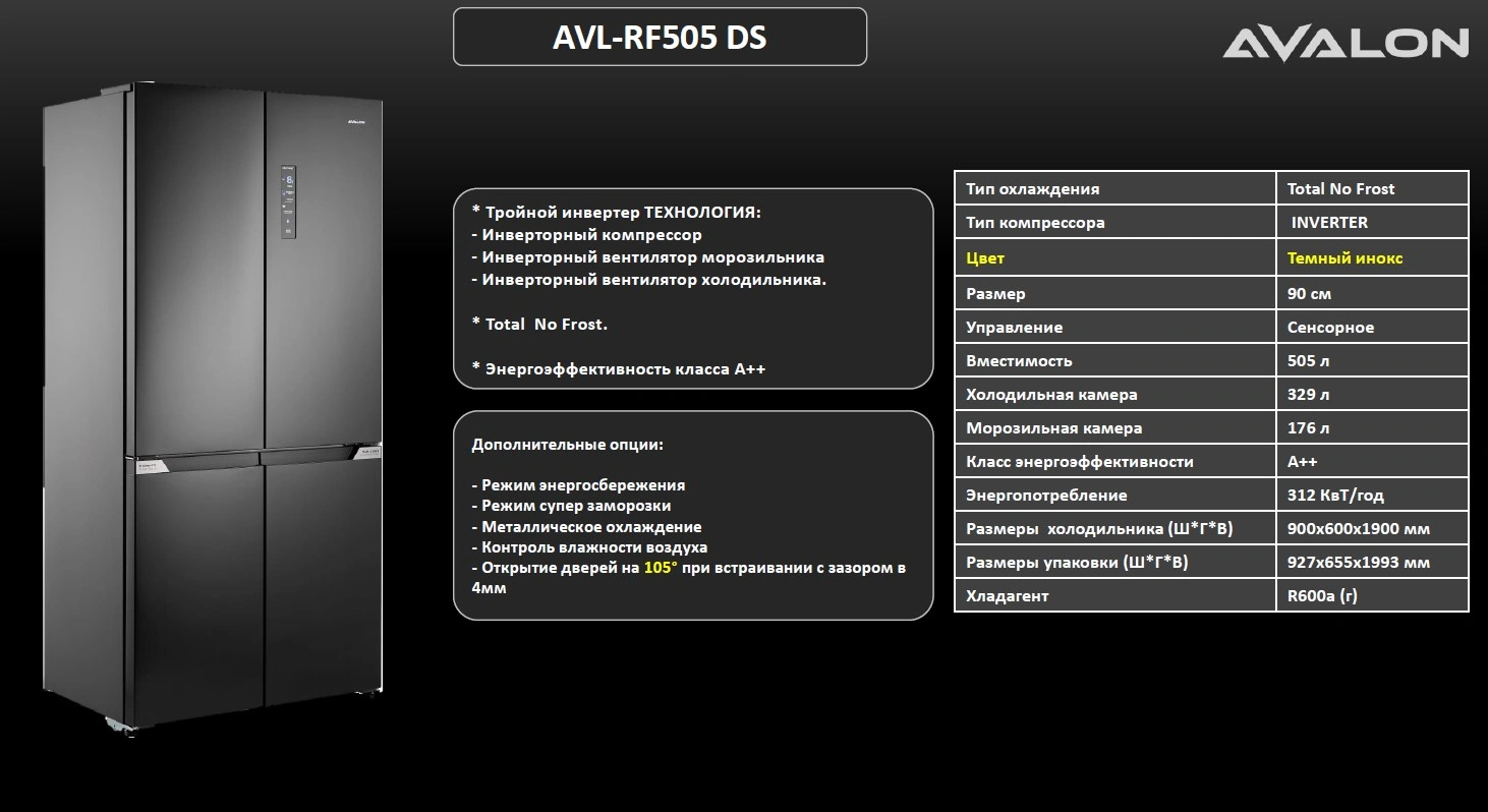 Avalon AVL-RF 505 muzlatgichi 505 litrli Side-by-Side muzlatgichidir.