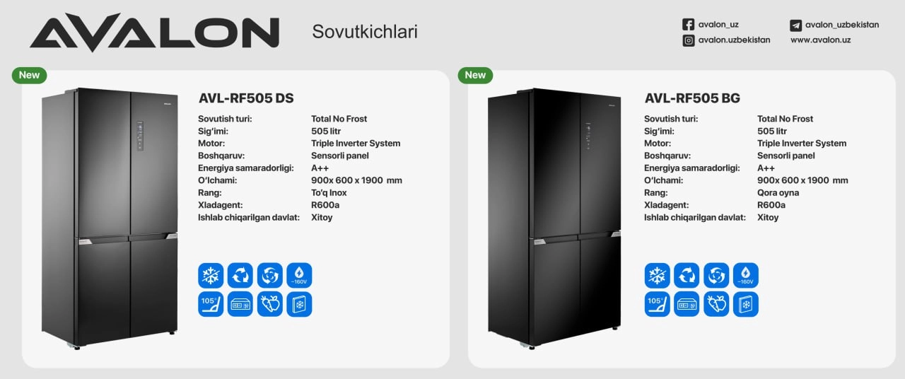 Umuman olganda, Avalon AVL-RF 505 muzlatgichi oziq-ovqat mahsulotlarini saqlash uchun keng va energiya tejamkor yechim izlayotganlar uchun ishonchli, funksional va zamonaviy tanlovdir.