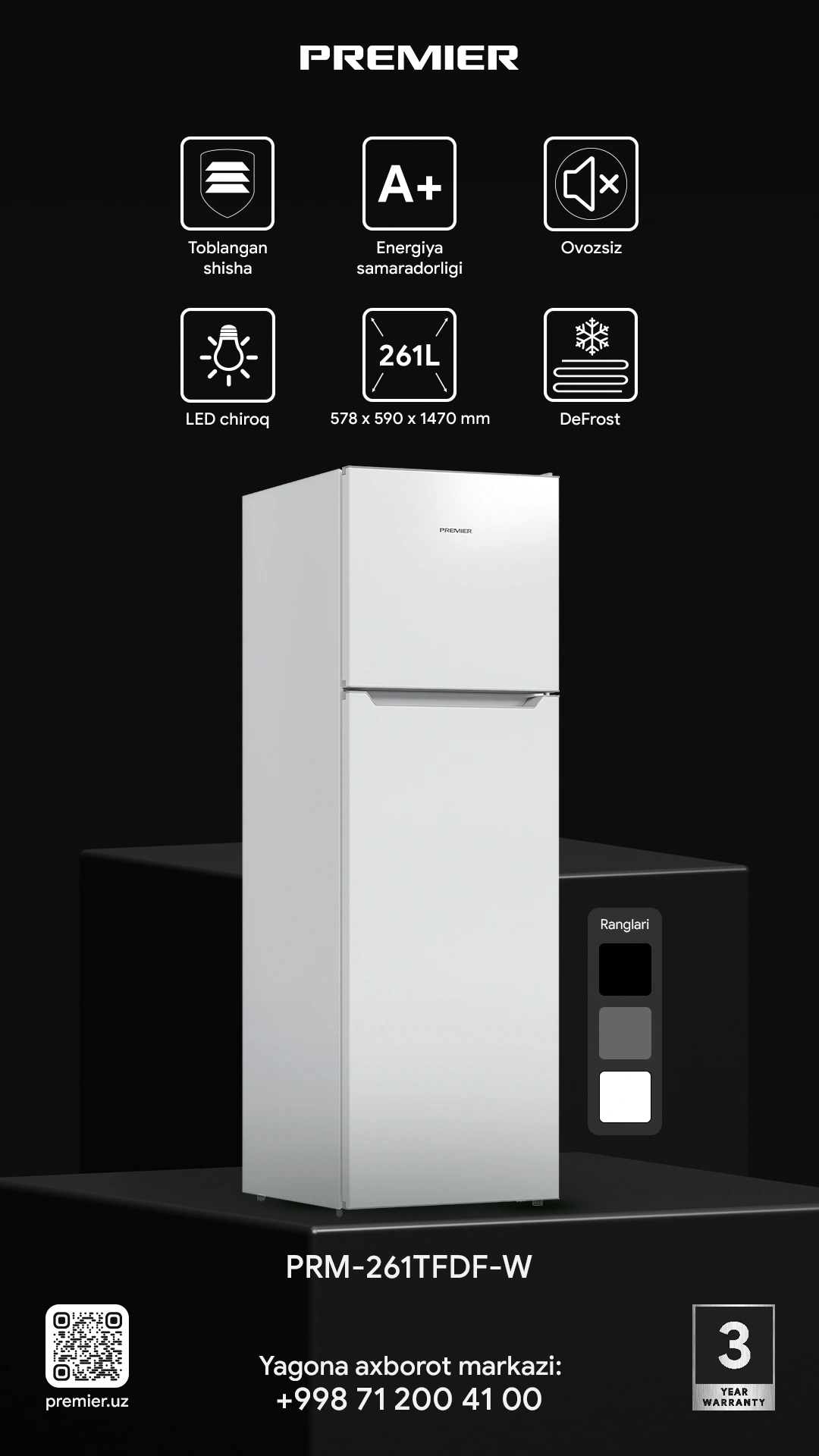 Umumiy foydali hajmi - 261 litr