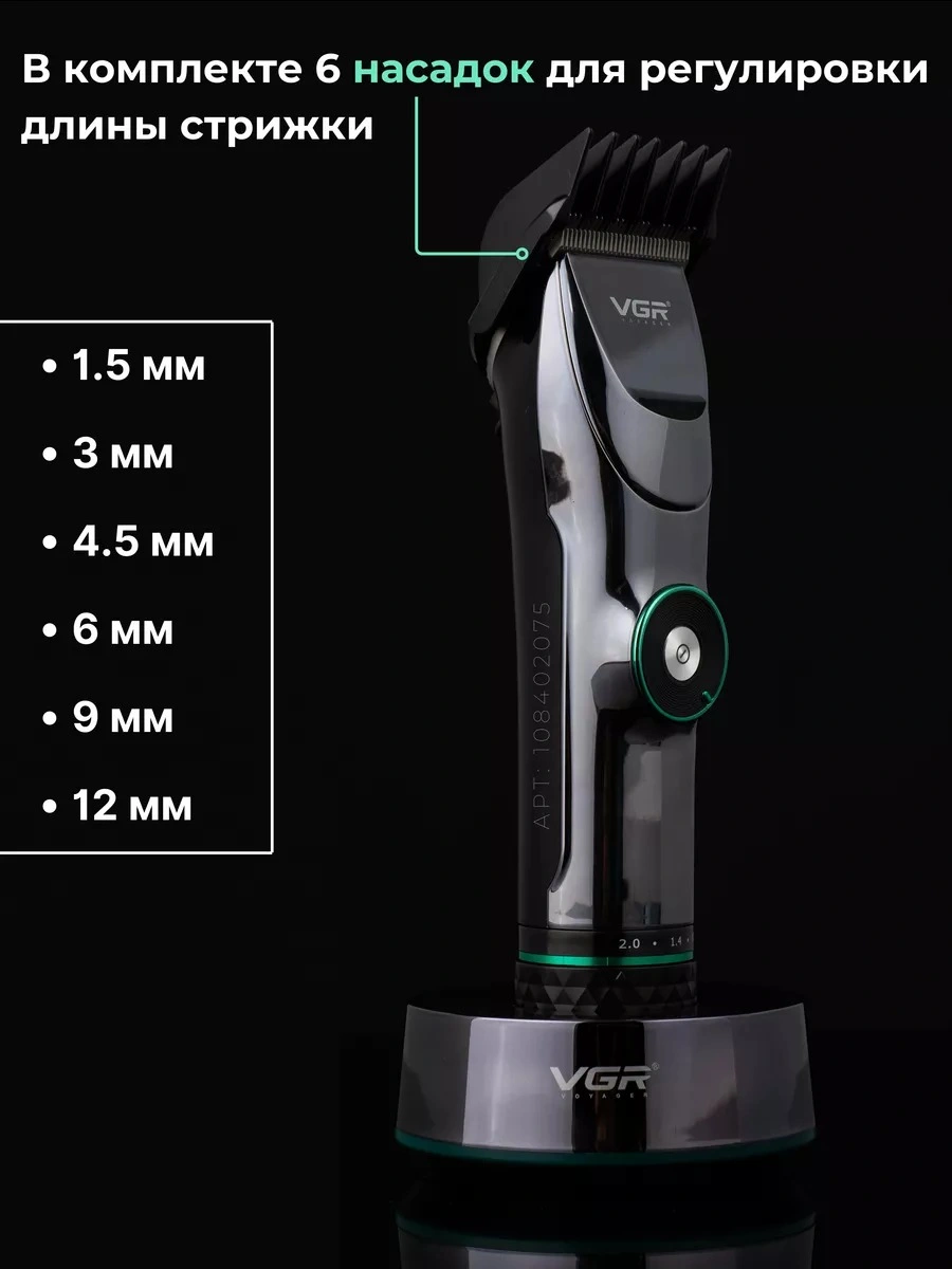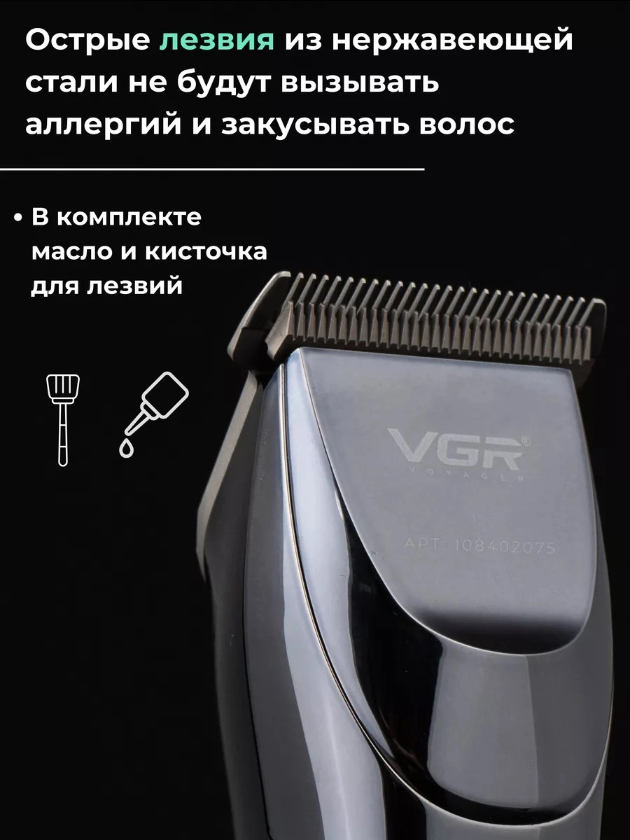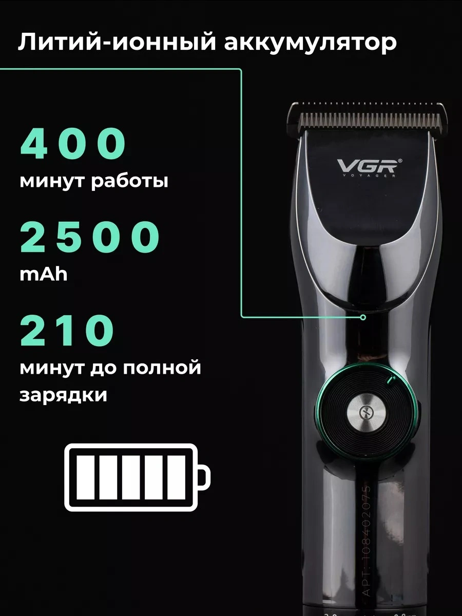 Профессиональная машинка для стрижки волос. Мощный роторный двигатель с увеличенным крутящим моментом. Машинка имеет профессиональные ножи из нержавеющей стали. Этот материал отличается высокой твердостью и долговечностью, что позволяет машинке справляться с самыми густыми и жесткими волосами. Машинка оснащена мощным аккумулятором и LED-дисплеем с индикатором уровня заряда. VGR V-256- это профессиональная многофункциональная машинка для стрижки, которая сочетает в себе функции триммера для волос и бороды в одном устройстве. Включает в себя полноразмерные направляющие гребни, чтобы удовлетворить Ваши потребности в стрижке головы и лица, он также очень подходит для стрижки детей или малышей благодаря малошумным и безопасным лезвиям. Тихий, мощный вращающийся двигатель, чтобы с легкостью прорезать даже самые густые волосы. Зубцы на лезвии плотно прилегают друг к другу, что позволяет удалять волосы без заедания и вытягивания, обеспечивая эффективную стрижку. Беспроводная зарядка через USB, триммер для волос очень удобен для самостоятельной стрижки. Одна полная зарядка дает вам до 180 минут использования. Светодиодный дисплей, который четко показывает оставшийся процент заряда батареи. Эргономичная ручка. Профессиональная машинка проста в использовании и отлично подойдет для домашнего использования и начинающих пользователей. Комплектация: защитная насадка, смазочное масло, расческа, USB - кабель, щетка для чистки и набор насадок: 1,5 / 3 / 4,5 / 6 / 10 / 13 мм для различной длины волос.