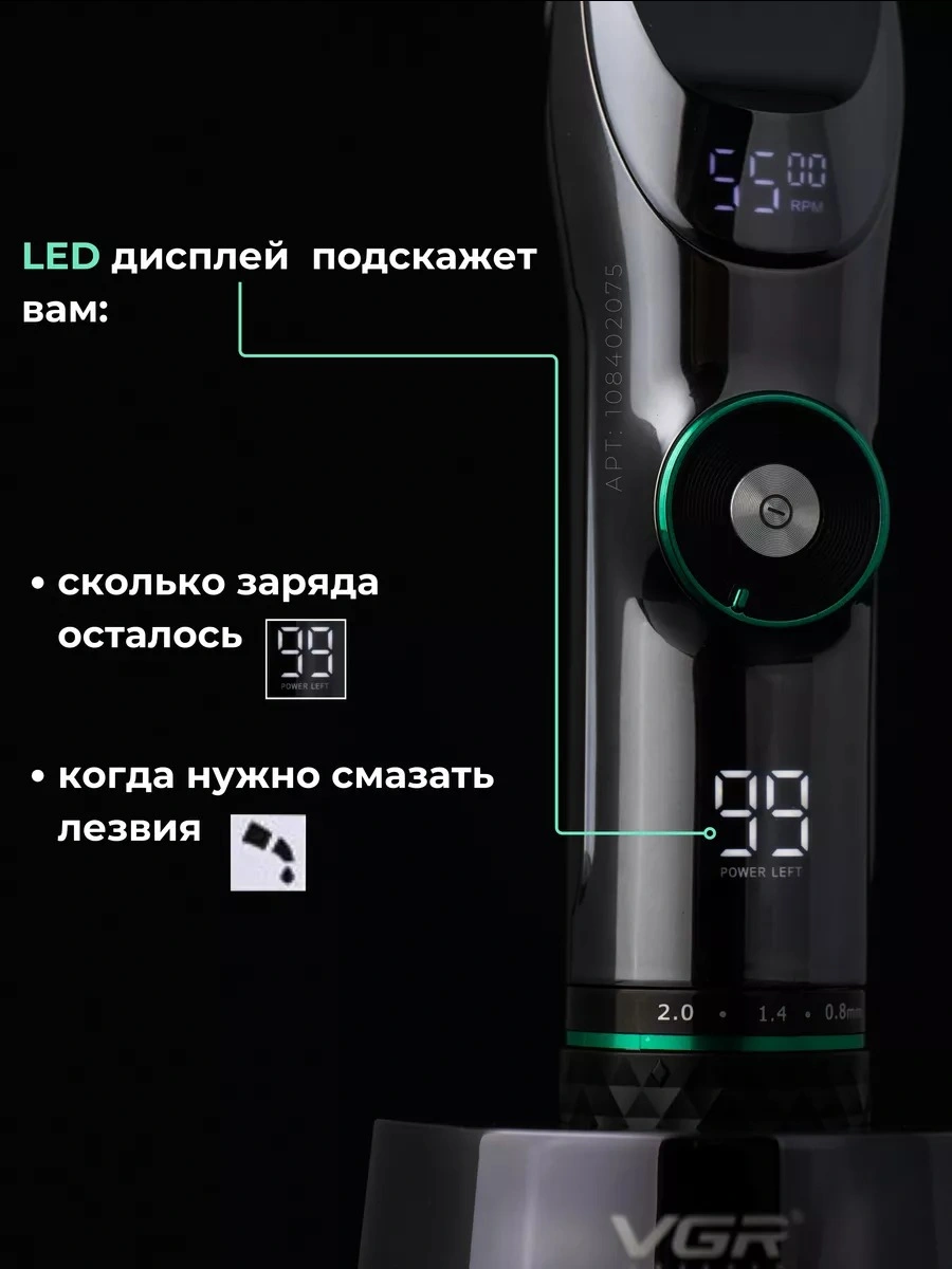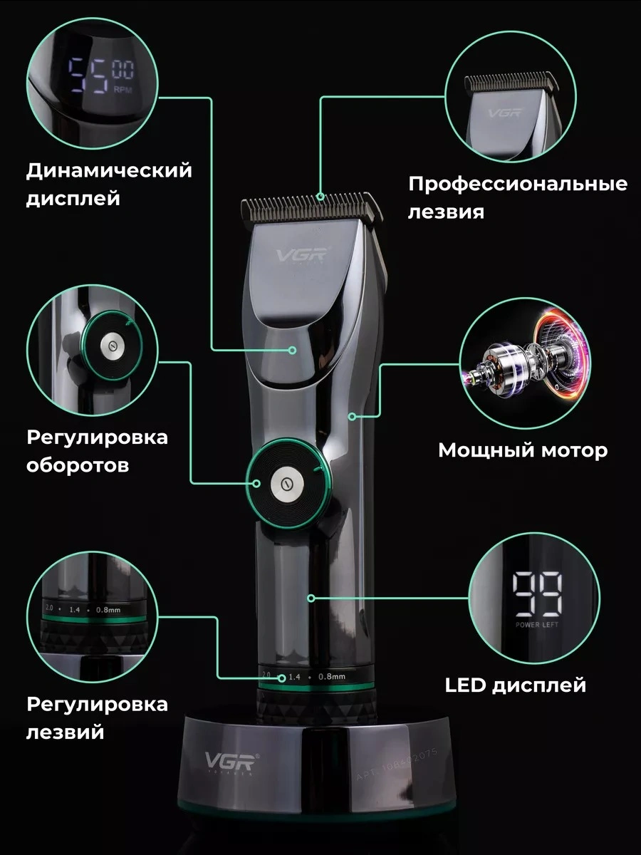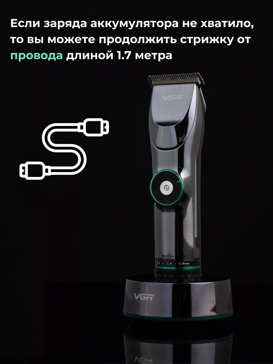 Профессиональная машинка для стрижки волос. Мощный роторный двигатель с увеличенным крутящим моментом. Машинка имеет профессиональные ножи из нержавеющей стали. Этот материал отличается высокой твердостью и долговечностью, что позволяет машинке справляться с самыми густыми и жесткими волосами. Машинка оснащена мощным аккумулятором и LED-дисплеем с индикатором уровня заряда. VGR V-256- это профессиональная многофункциональная машинка для стрижки, которая сочетает в себе функции триммера для волос и бороды в одном устройстве. Включает в себя полноразмерные направляющие гребни, чтобы удовлетворить Ваши потребности в стрижке головы и лица, он также очень подходит для стрижки детей или малышей благодаря малошумным и безопасным лезвиям. Тихий, мощный вращающийся двигатель, чтобы с легкостью прорезать даже самые густые волосы. Зубцы на лезвии плотно прилегают друг к другу, что позволяет удалять волосы без заедания и вытягивания, обеспечивая эффективную стрижку. Беспроводная зарядка через USB, триммер для волос очень удобен для самостоятельной стрижки. Одна полная зарядка дает вам до 180 минут использования. Светодиодный дисплей, который четко показывает оставшийся процент заряда батареи. Эргономичная ручка. Профессиональная машинка проста в использовании и отлично подойдет для домашнего использования и начинающих пользователей. Комплектация: защитная насадка, смазочное масло, расческа, USB - кабель, щетка для чистки и набор насадок: 1,5 / 3 / 4,5 / 6 / 10 / 13 мм для различной длины волос.