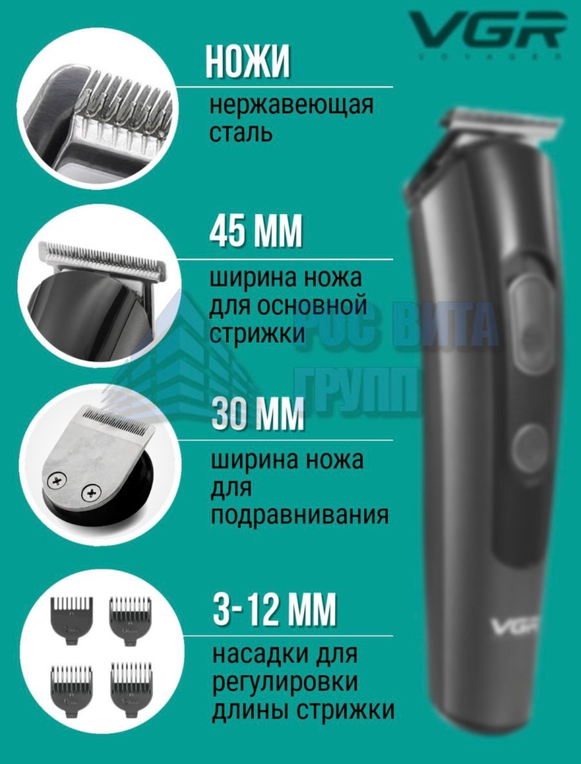 Набор VGR V-175 имеет 5 (пять) сменные головки, которые легко удаляют волосы - в носу, ушах и других чувствительных зонах.