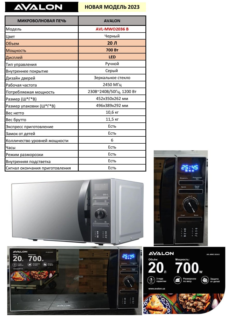 Микроволновая печь Avalon AVL-MWO2036 B, черный