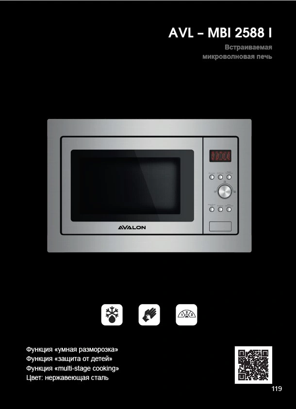 AVL-MBI 2588 I oshxonada siz uchun qulay joyga o'rnatiluvchi, taomlarni tayyorlash uchun mukammal qurilma . Ichki kamera bardoshli zanglamaydigan po'latdan yasalgan, shikastlanishga chidamli. Ushbu qoplama ifloslantiruvchi moddalarning yopishishini oldini oladi va tozalash jarayonini osonlashtiradi. Mikroto'lqinli pechning muzdan tushirish funksiyasi muzlatilgan ovqatni tezda tayyorlaydi.