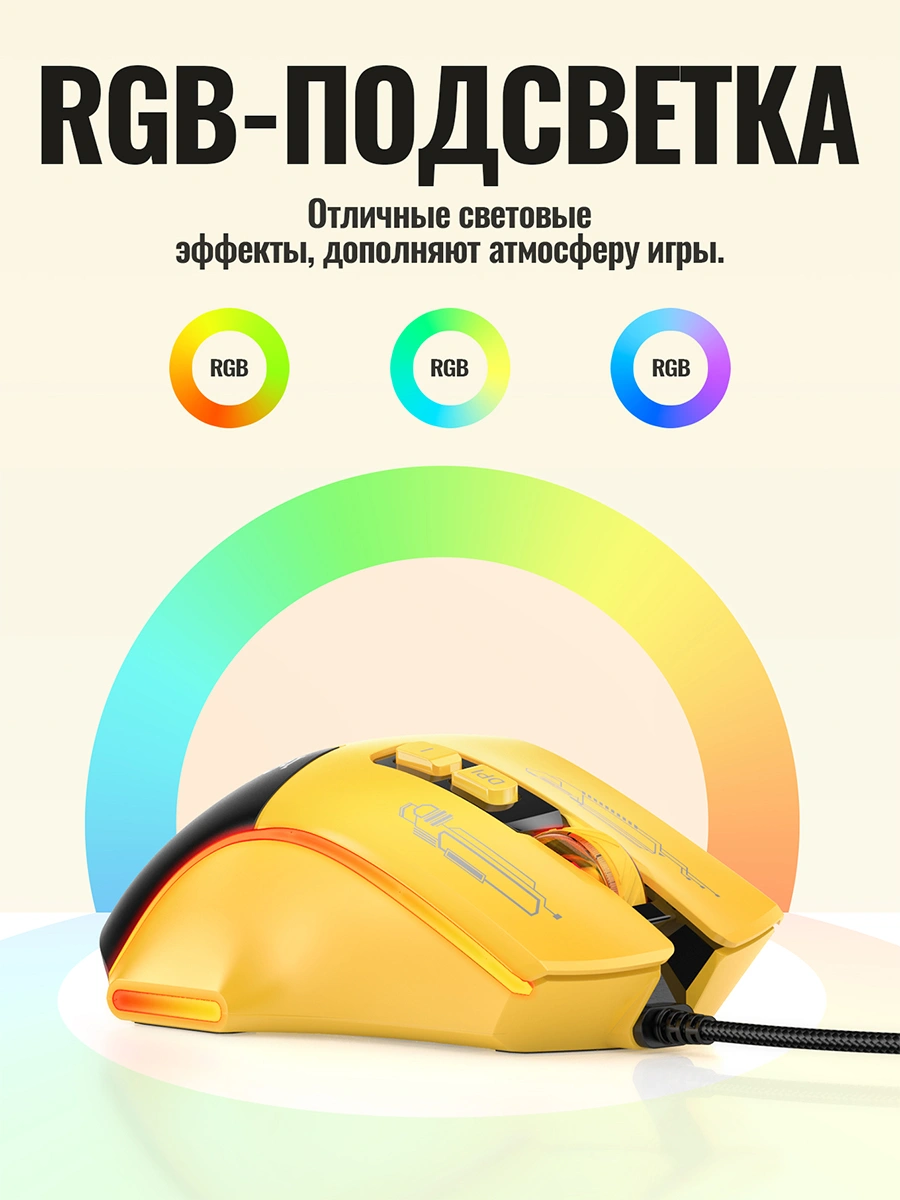 5. RGB-подсветка: Яркая RGB-подсветка создает стильный визуальный эффект, который дополняет ваш игровой сетап и создает атмосферу для погружения в игру.