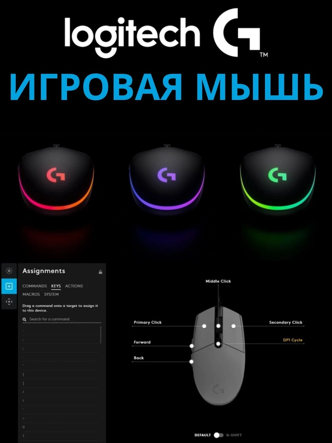 6 ta dasturlanadigan tugma bilan G203 turli buyruqlarni bir sichqoncha bosishida bajarishga yordam beradi. Bu esa o‘yinchi yoki foydalanuvchiga ko‘proq nazorat imkoniyatini beradi. LIGHTSYNC RGB yoritish tizimi esa sichqonchani shaxsiylashtirish imkonini oshirib, ish joyiga yorqinlik qo‘shadi. RGB effektlari moslashuvchan bo‘lib, o‘yin jarayoni dinamikasiga mos ravishda sinxronlashishi mumkin.