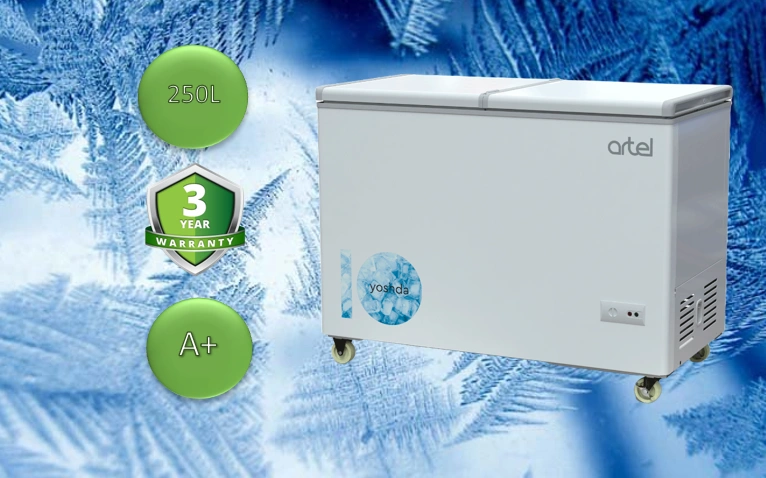 250 litr — katta sig‘imga ega bo‘lib, ko‘p miqdordagi mahsulotlarni saqlash uchun yetarli.