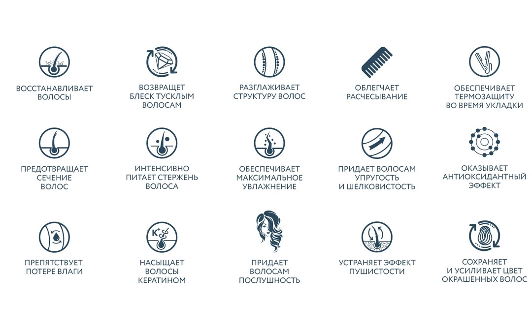 Asosiy komponentlar orasida provitamin B5, keratin va o‘simlik ekstraktlari mavjud bo‘lib, ular intensiv parvarish va tiklashga yordam beradi.