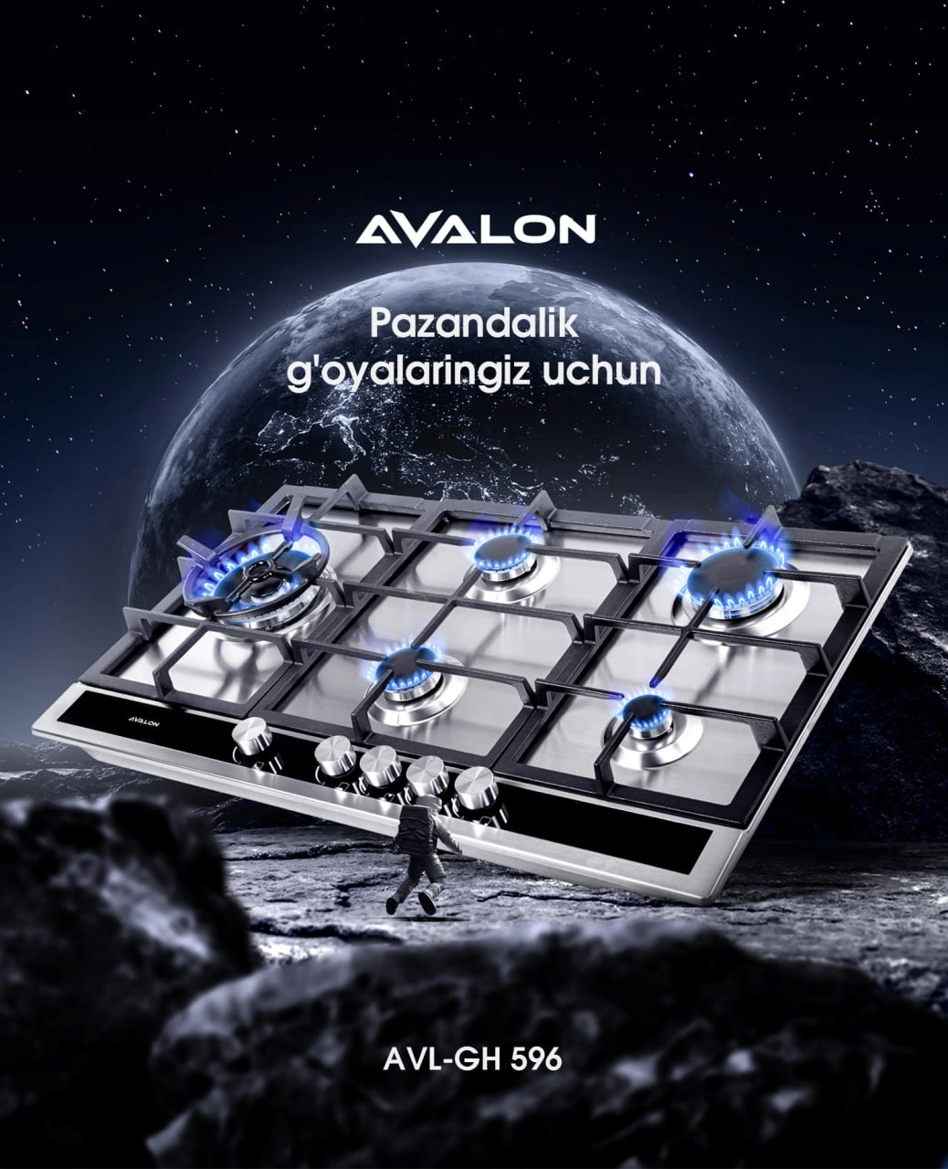 Kengligi 90 sm bo'lgan AVL-GH 596 gaz plitasi olovda pishirilgan taomni yoqtiradiganlar uchun yaxshi tanlovdir. Turli xil quvvatdagi beshta konforka bir vaqtning o'zida ko'plab taomlarni tayyorlashga imkon beradi. Gaz bosimi maxsus sensor tomonidan nazorat qilinadi. Shamol yoki boshqa sabablarga ko'ra olov o'chgan zahotiyoq gaz ta'minoti darhol to'xtaydi.