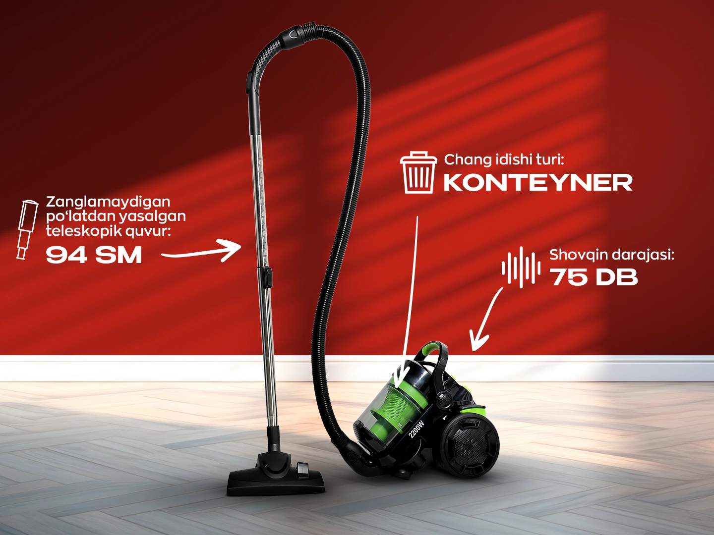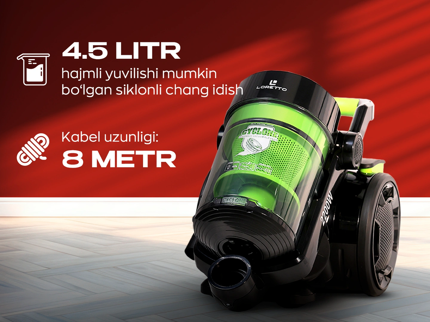 - Aksessuarlar: 2 qavatli HEPA filtri, siklon filtri