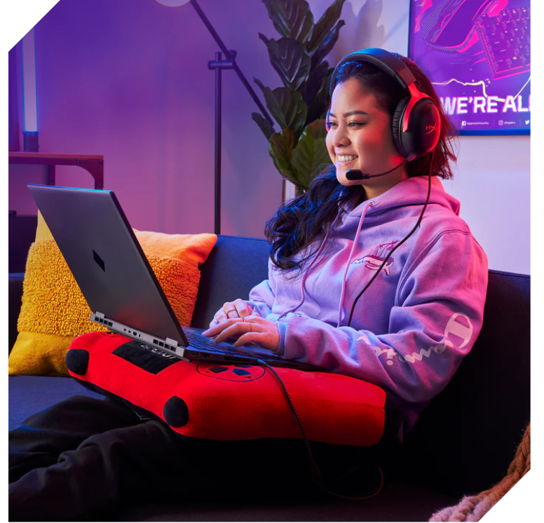 Komfort Cloud III DNKida. Bosh tasma va quloq yostiqlaridagi HyperX-ning o'ziga xos xotira ko'piki yumshoq va qulay joylashish uchun yumshoq, yuqori sifatli sintetik teri bilan qoplangan.
