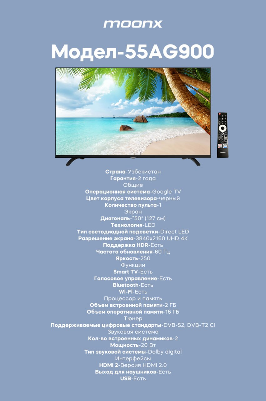 Moonx 55AG900 televizori bilan sevimli filmlaringiz va dasturlaringiz yanada yorqinroq va qiziqarliroq bo‘ladi!