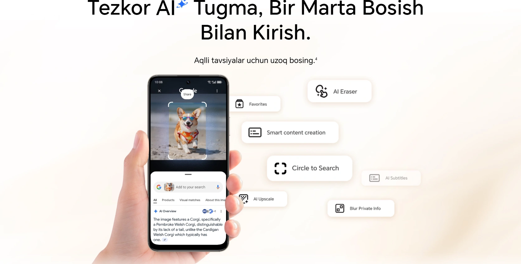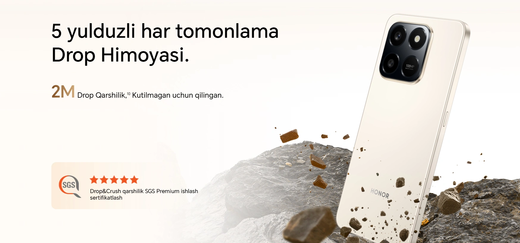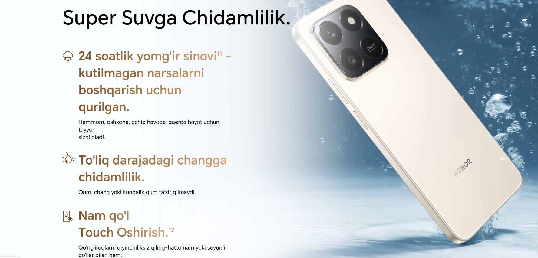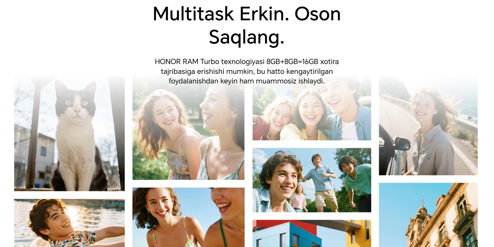 - 🤖 MagicOS 9.0 (Android 15) — AI tugmasi va HONOR Connect ilovasi orqali tezkor ma’lumot almashish.