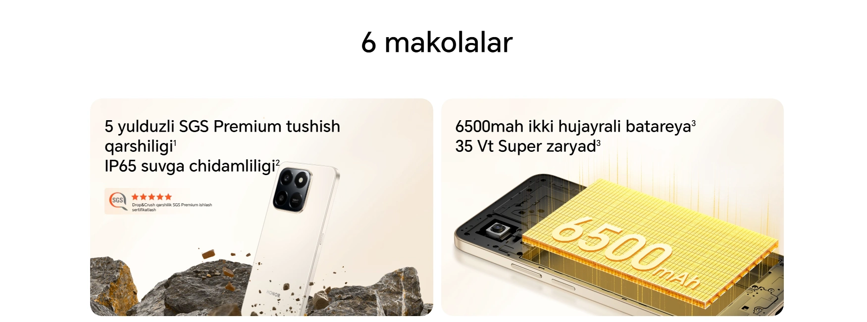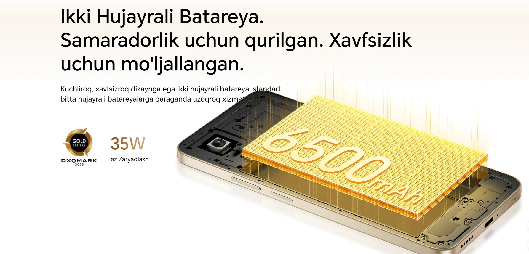 - 🔋 Kuchli 6500 mA·s batareya — ikki elementli tuzilma va 35 Vt tezkor zaryadlanish.