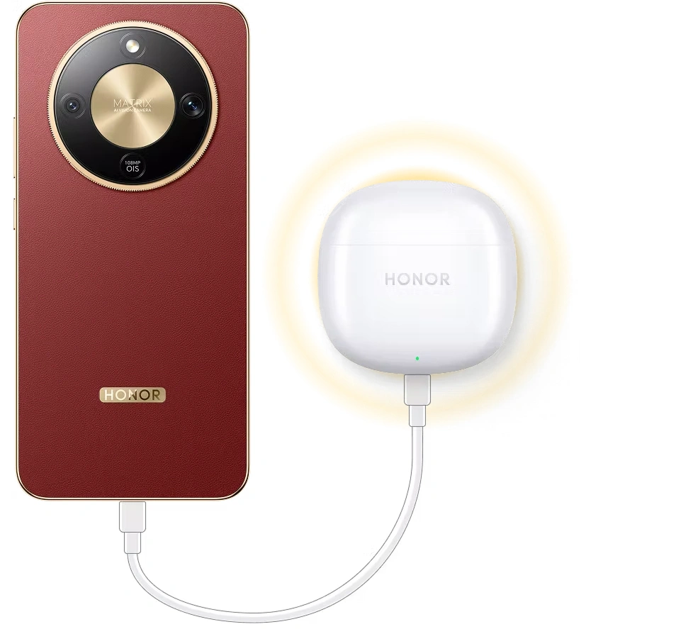 HONOR X9d soat, quloqlik va boshqa qurilmalarni quvvatlash uchun tashqi batareya sifatida ishlatilishi mumkin.