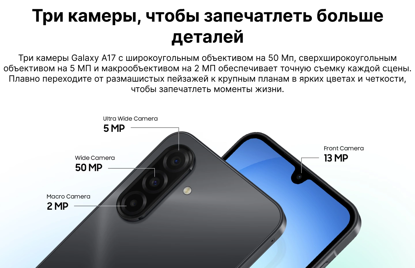 Смартфон Samsung Galaxy A17 4/128 ГБ, черный