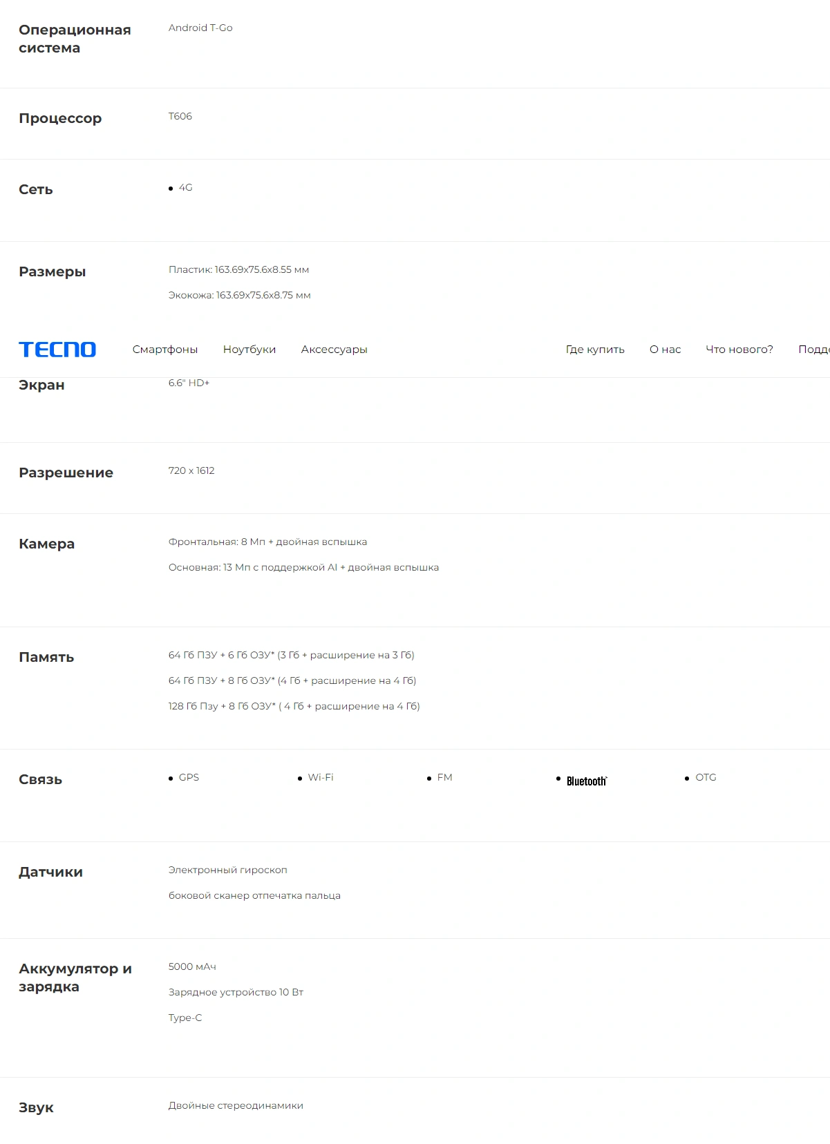 Объем встроенной памяти