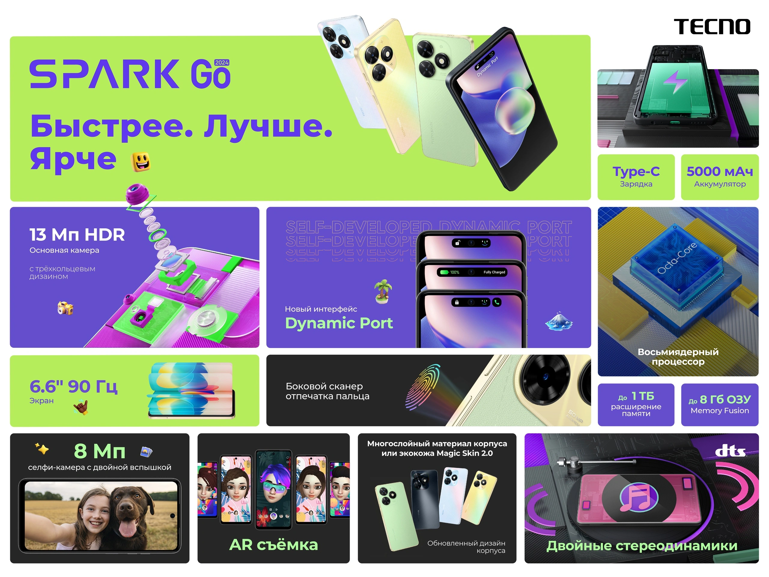 Смартфон Tecno Spark GO 2024 2/64 ГБ, Gravity Black