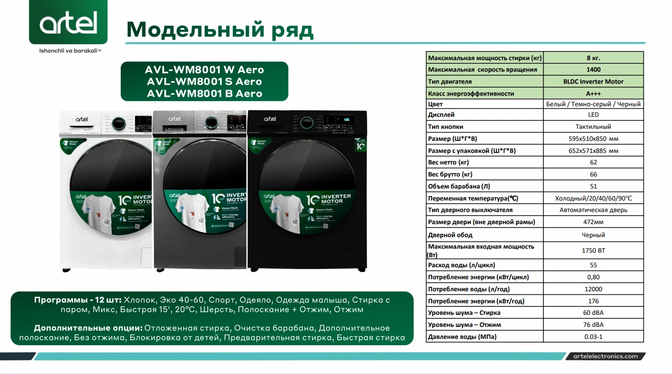 Стиральная машина Artel AVL-WM8001 W Aero, белый