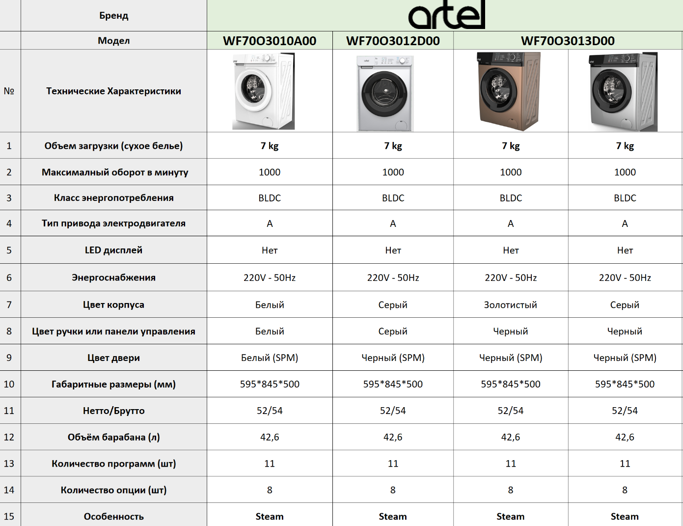 Artel WF70M0710A White kir yuvish mashinasi zamonaviy uy bekasi uchun ishonchli va samarali texnikadir. Ushbu model mukammal yuvish sifati, qulay foydalanish va zamonaviy dizaynni o‘zida birlashtiradi.