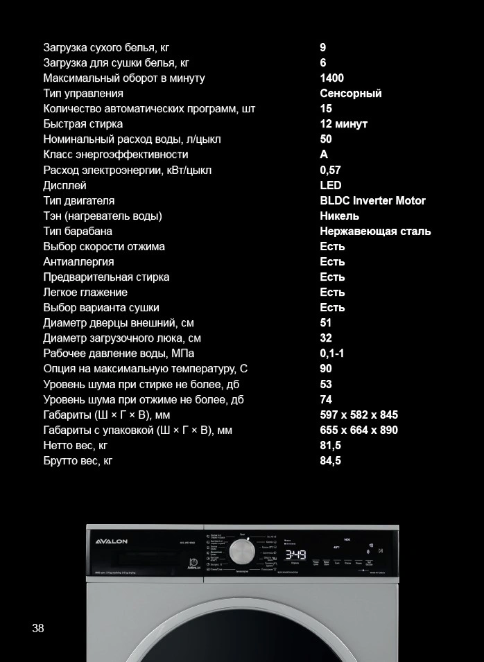 AVALON kir yuvish mashinalari nafis dizayn va ilg'or texnologiyalarni o'zida mujassam etgan. Ushbu kir yuvish mashinasi A+++ energiya samaradorligi darajasiga ega. Kirlarni samarali tozalash va yuvish uchun mo'ljallangan. Ushbu model innovatsion BLDC inverter motoriga ega. U uzoq muddat ishlash, elektr energiyasini tejash hamda shovqinsiz ishlash uchun mo'ljallangan.