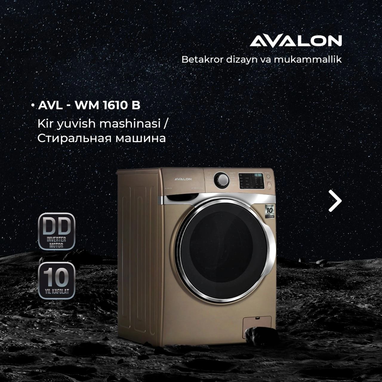 Avalon kir yuvish mashinalari nafis dizayn va ilg'or texnologiyalarni o'zida mujassam etgan. Ushbu kir yuvish mashinasi A+++ energiya samaradorligi darajasiga ega. Kirlarni samarali tozalash va yuvish uchun mo'ljallangan. Ushbu model to'g'ridan-to'g'ri ulangan inverter motoriga ega. U uzoq muddat ishlash, elektr energiyasini tejash hamda shovqinsiz ishlash uchun mo'ljallangan.