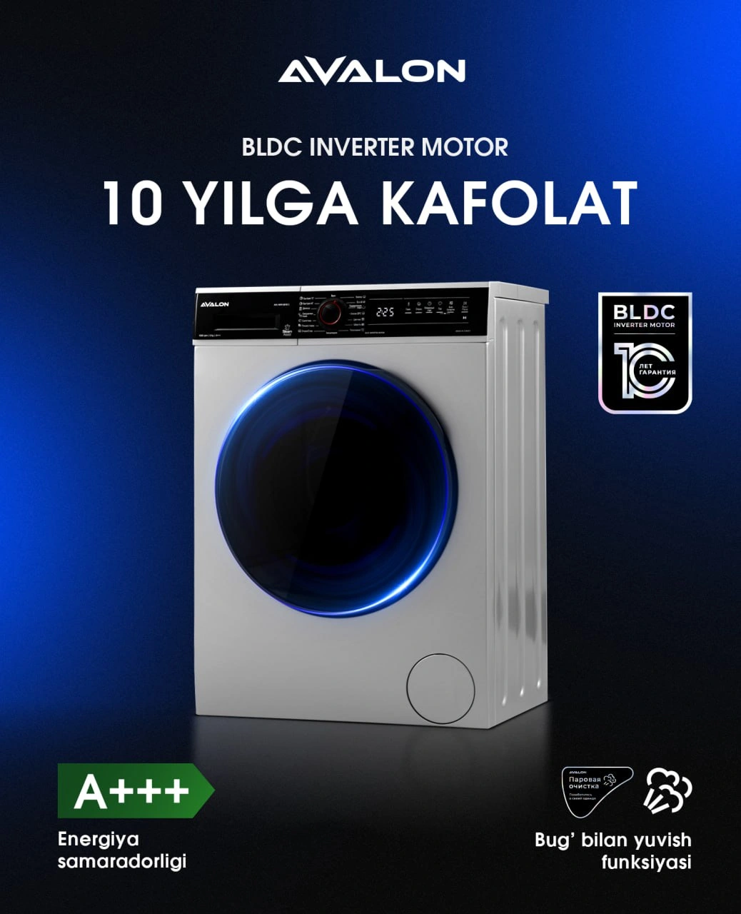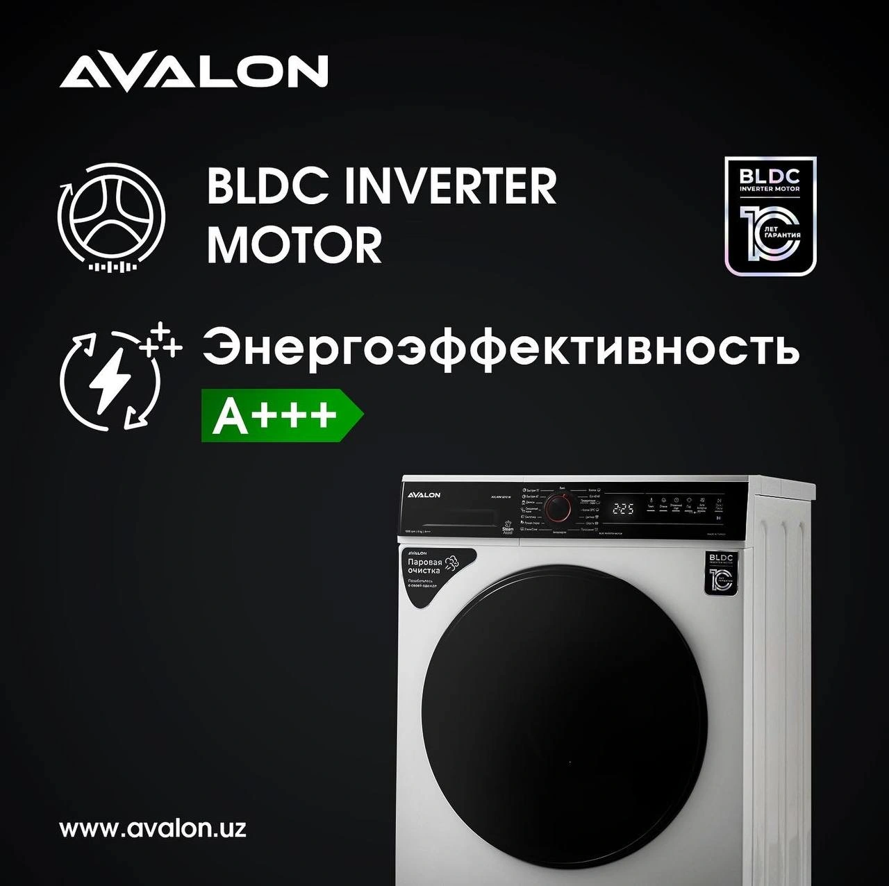 AVALON kir yuvish mashinalari nafis dizayn va ilg'or texnologiyalarni o'zida mujassam etgan. Ushbu kir yuvish mashinasi A+++ energiya samaradorligi darajasiga ega. Kirlarni samarali tozalash va yuvish uchun mo'ljallangan. Ushbu model innovatsion BLDC inverter motoriga ega. U uzoq muddat ishlash, elektr energiyasini tejash hamda shovqinsiz ishlash uchun mo'ljallangan.