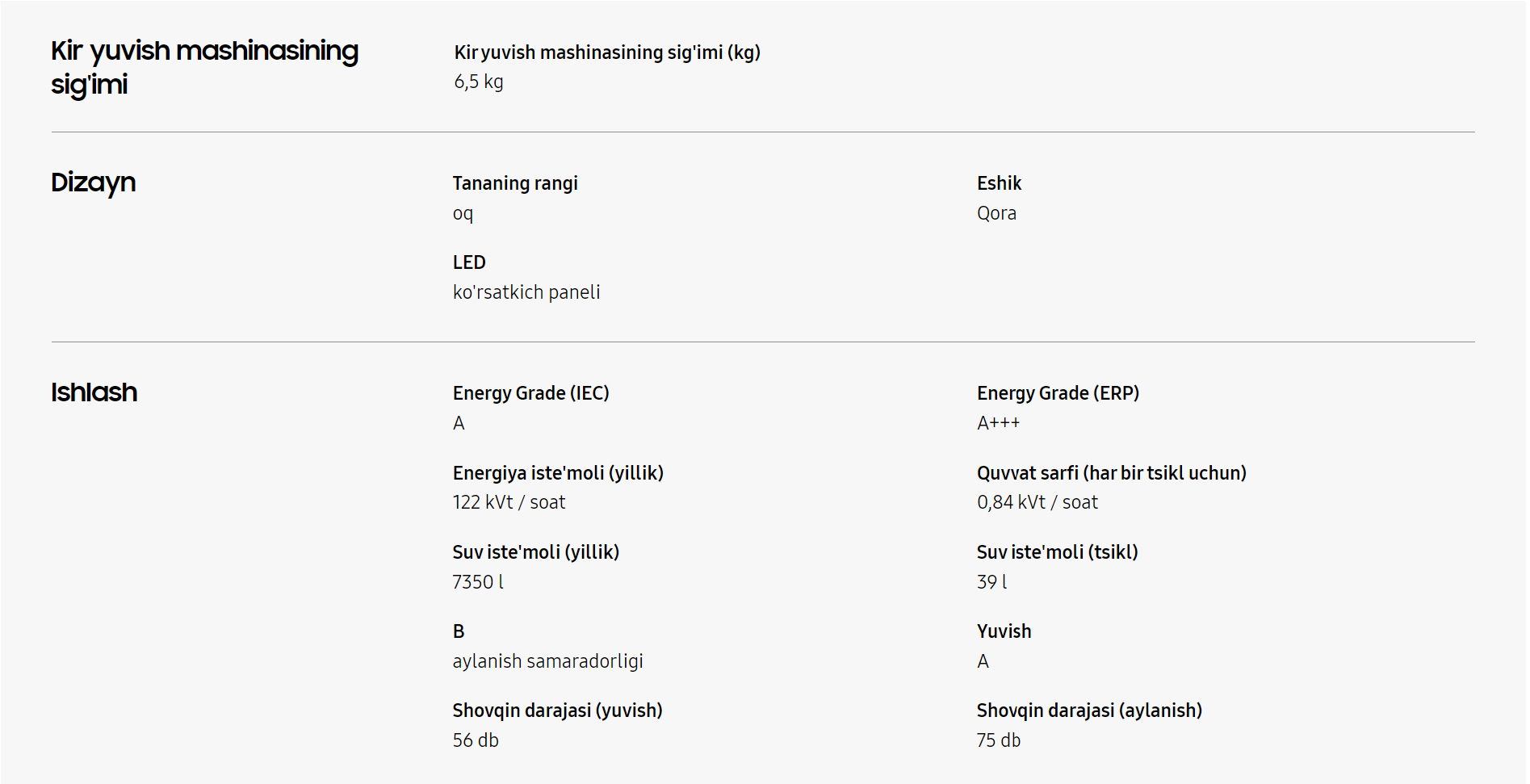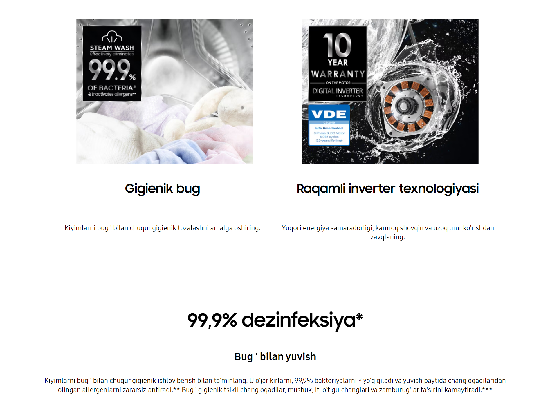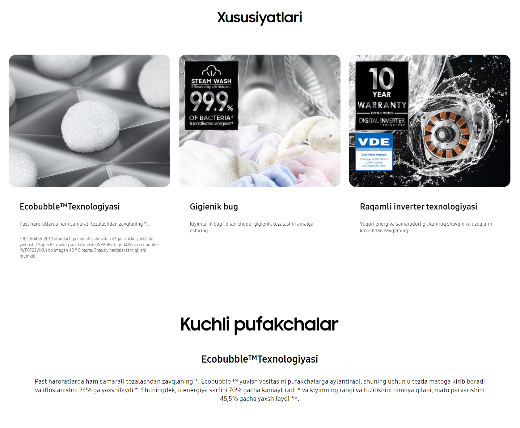 Kir yuvish mashinasi WW65AG4S21CELD 6.5kg EcoBubble™ funksiasi bilan