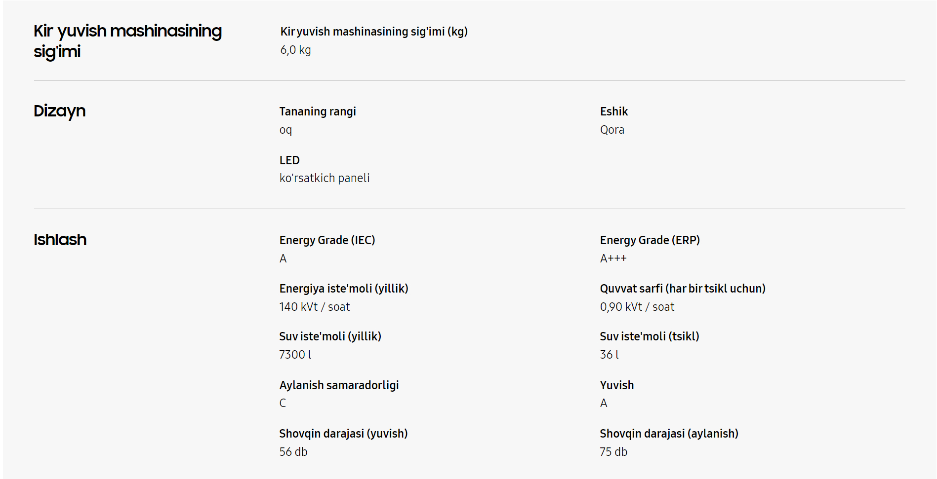 Kir yuvish mashinasi WW60AG4S00CELD 6kg
