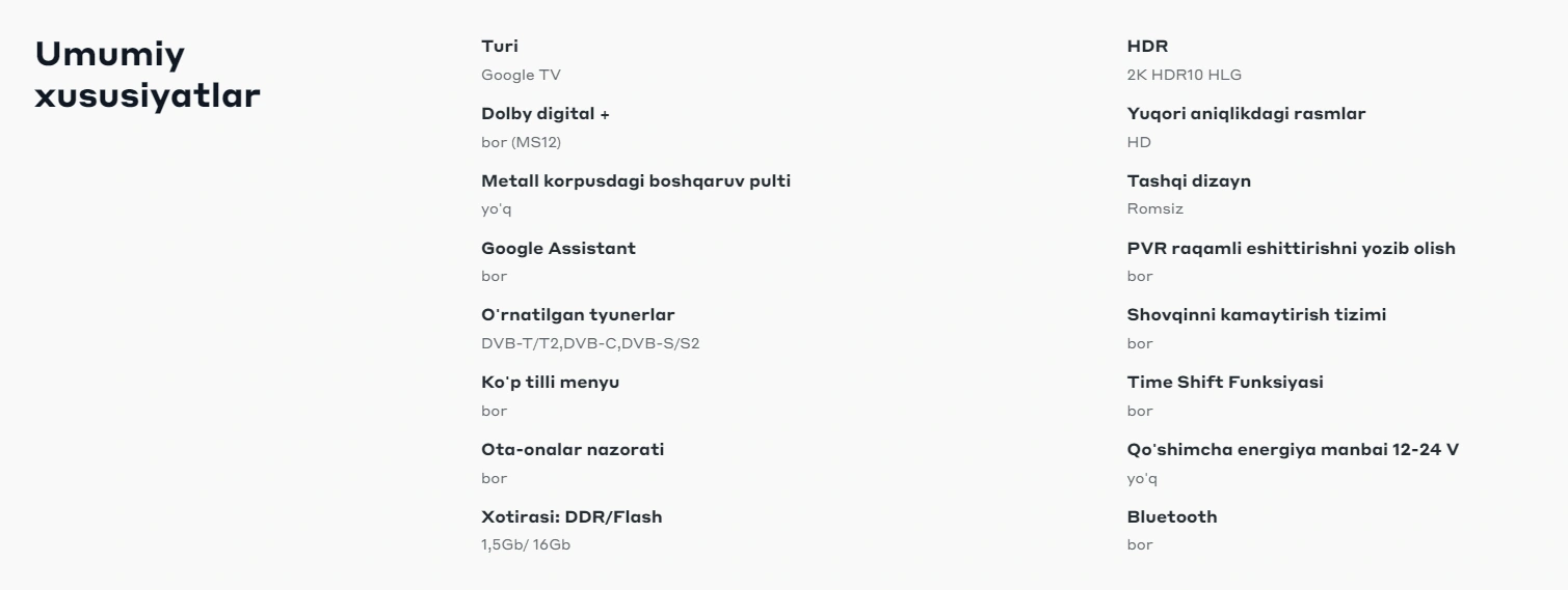 HDMI 3× (eARC, ALLM), USB 2×, Ethernet, CI, RF, SPDIF (оптика)