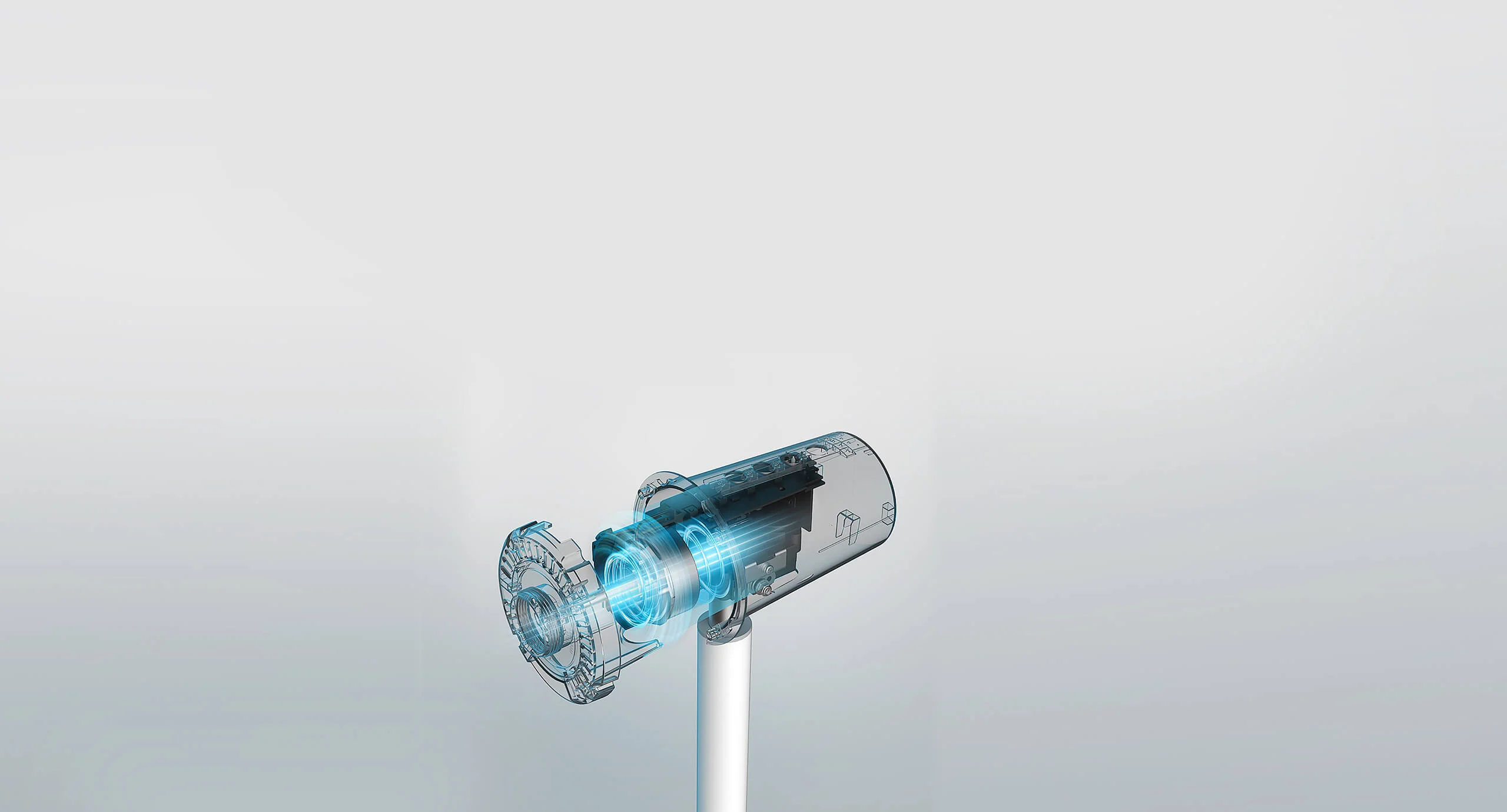 Alyuminiy g‘altakka nisbatan cho‘tkasiz o‘zgarmas tok motori yuqori samaradorlikka va ishlash muddatiga ega, barqarorroq shamollatish uchun o‘zgarmas tezlikda ishlaydi va yuqori energiya tejamkorligini ta’minlaydi. Qanot shaklidagi yuqori samarali parraklar tufayli ventilyator maksimal 20,28 m3/min havo oqimini hosil qila oladi.