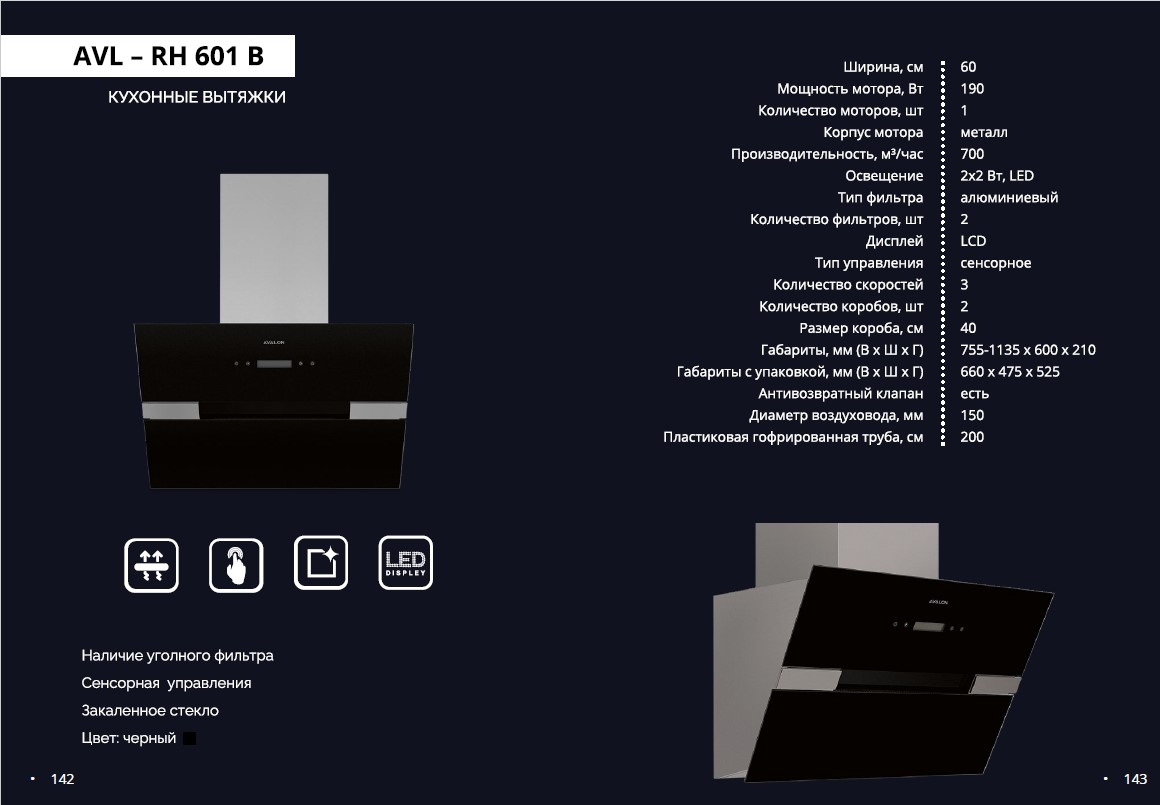 AVALON havo tortkichi ikki rejimda ishlaydi: havo tortish gofrasi bilan va ko'mirli filtr yordamida. Uning unumdorligi soatiga 700 kubometrni tashkil qiladi. Ko'mirli filtr bilan jihozlangan havo tortkich oshxonadagi havoni tutun va boshqa ifloslantiruvchi moddalardan samarali tozalaydi. Ushbu modelning muhim xususiyati sensorli boshqaruv tizimidir.