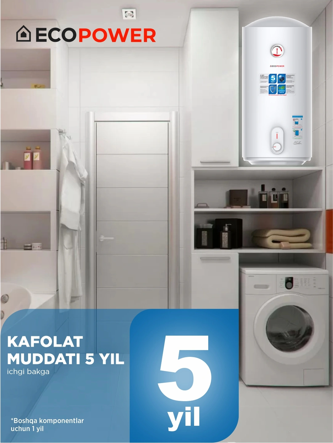 ECOPOWER suv isitgichlari bilan uyingiz uchun energiya tejovchi yechimlar dunyosiga xush kelibsiz. Bizning qurilmalarimiz uyingizga qulaylik va tejamkorlik olib kelish uchun ilg'or texnologiya va zamonaviy dizaynni birlashtiradi. Minimal energiya sarfi uchun maxsus ishlab chiqilgan ECOPOWER suv isitgichlari arzon narxlarda yuqori quvvatni taklif qiladi.